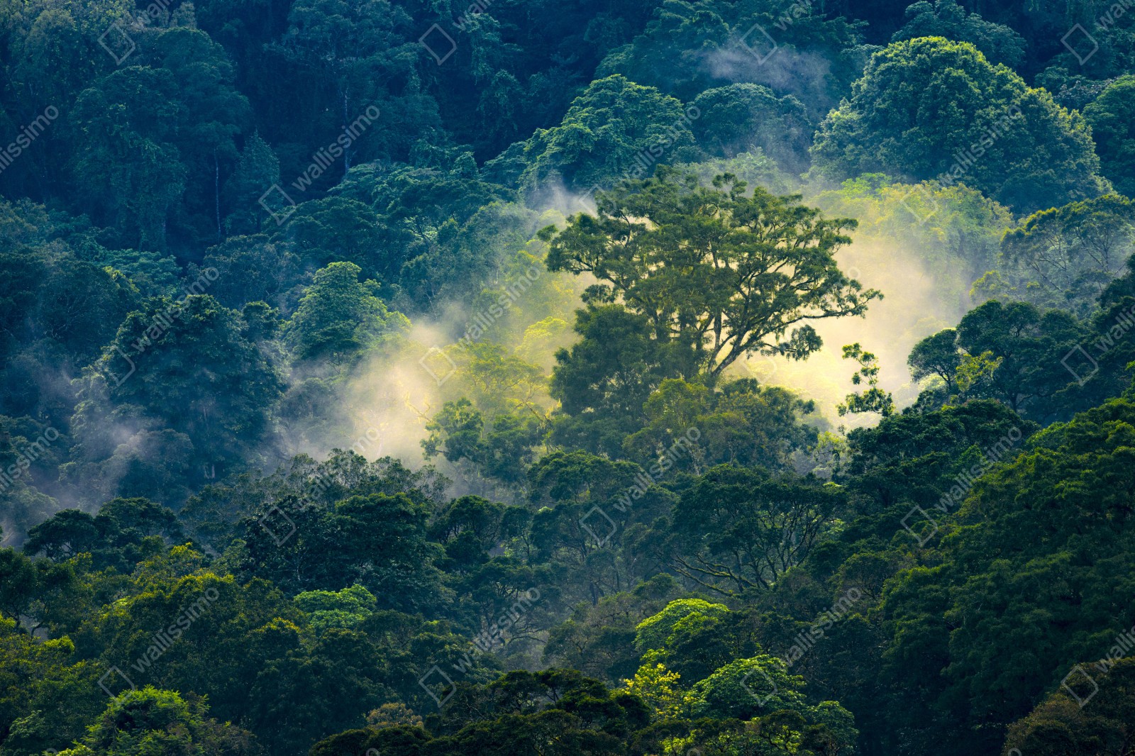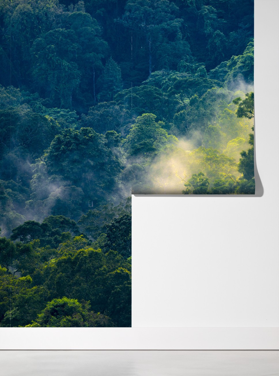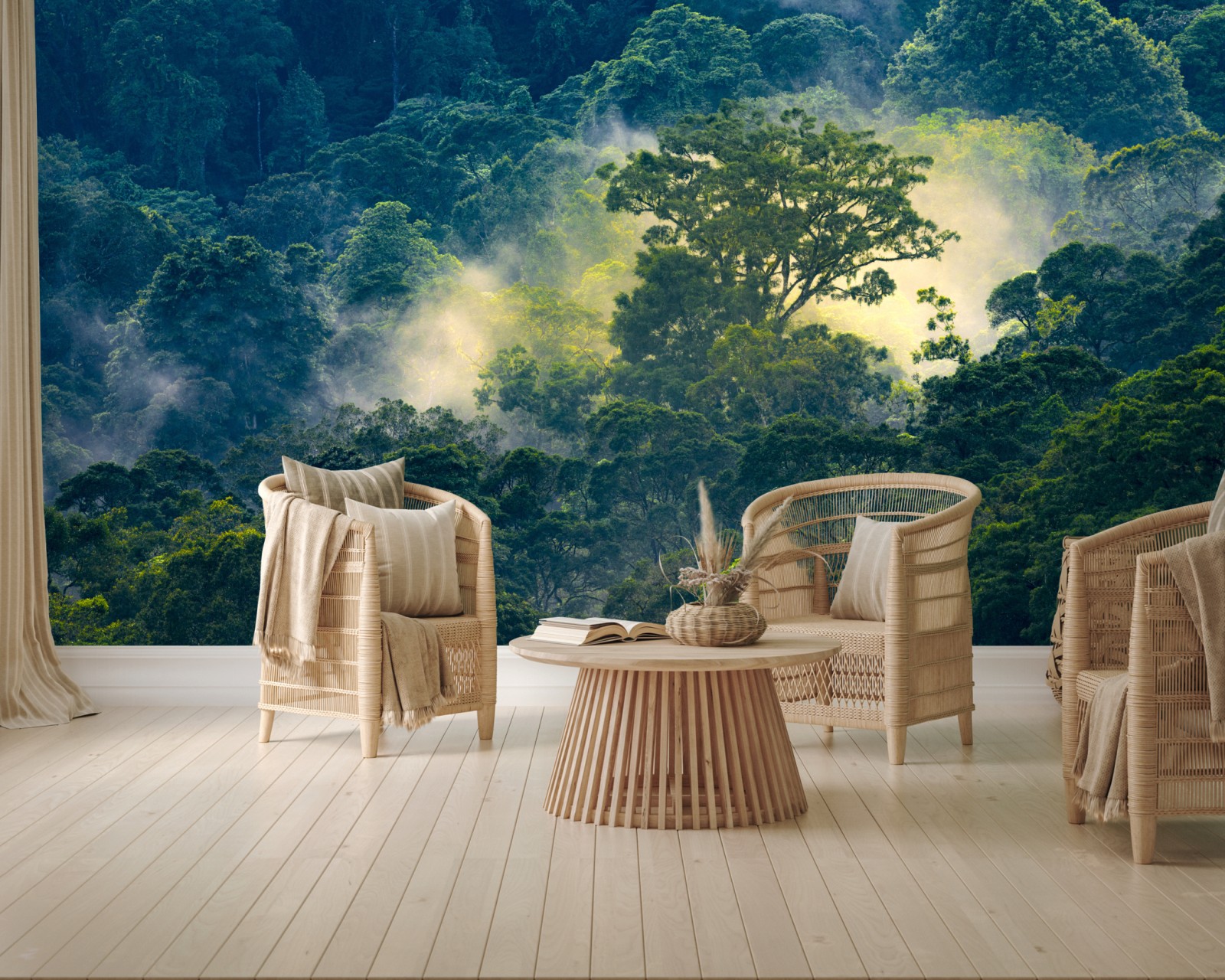 Wprowadź spokój i naturalne piękno do wnętrza dzięki temu obrazowi mglistego lasu deszczowego, który emanuje harmonią i głębią.
