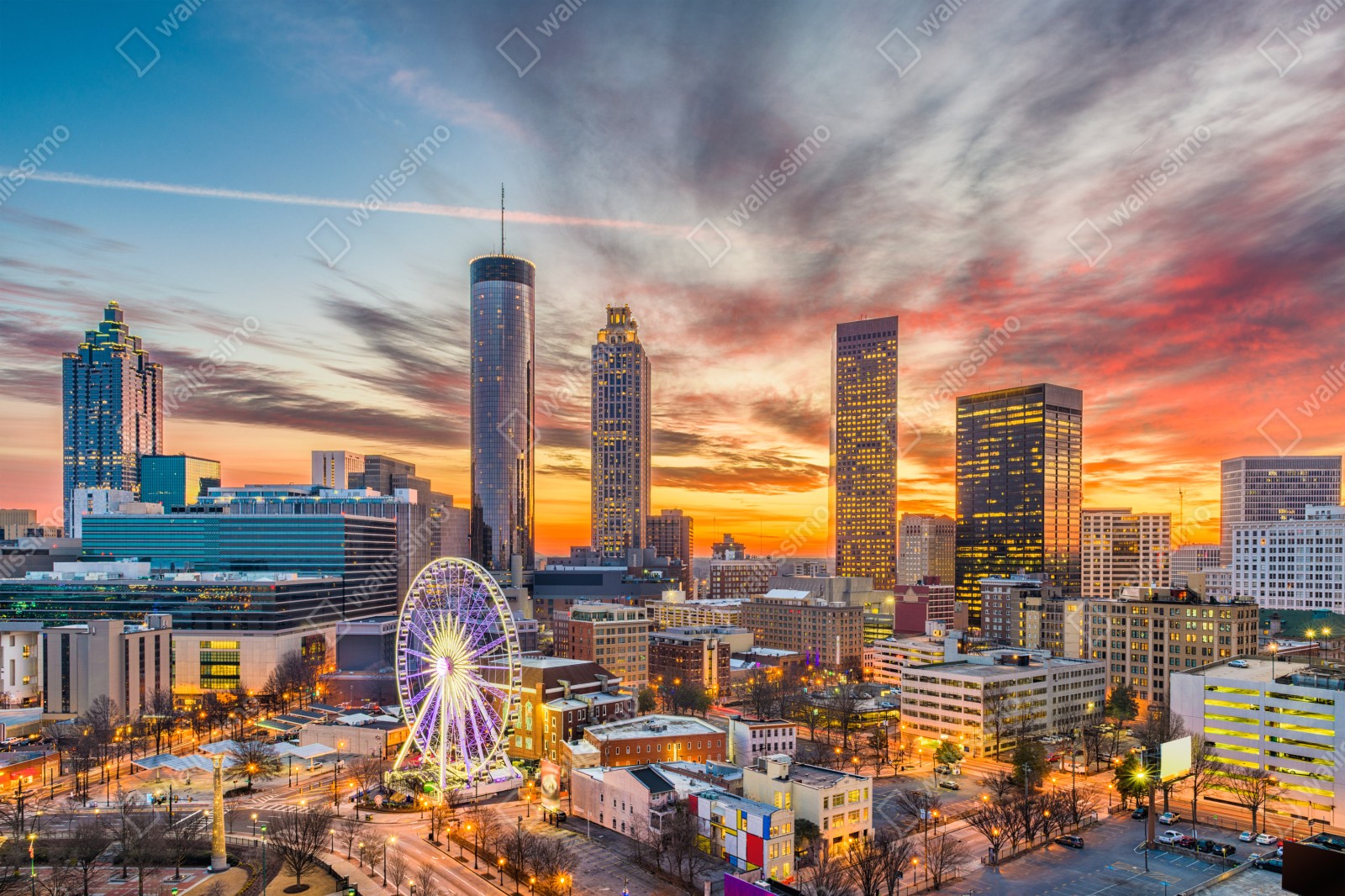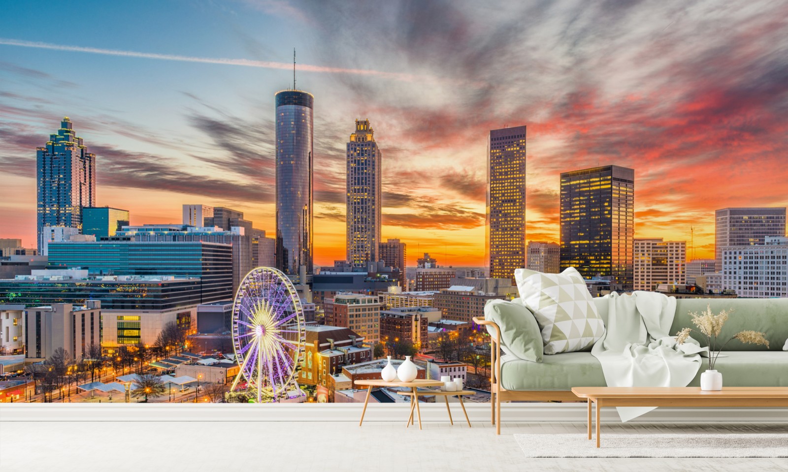 Uchwyć żywą energię Atlanty dzięki tej oszałamiającej miejskiej panoramie z zachodem słońca i diabelskim młynem.