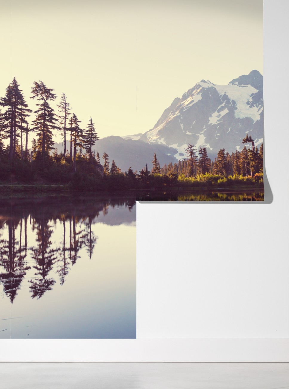 Wprowadź spokojną alpejską scenerię do wnętrza dzięki odbiciu Mount Shuksan w krystalicznym jeziorze.