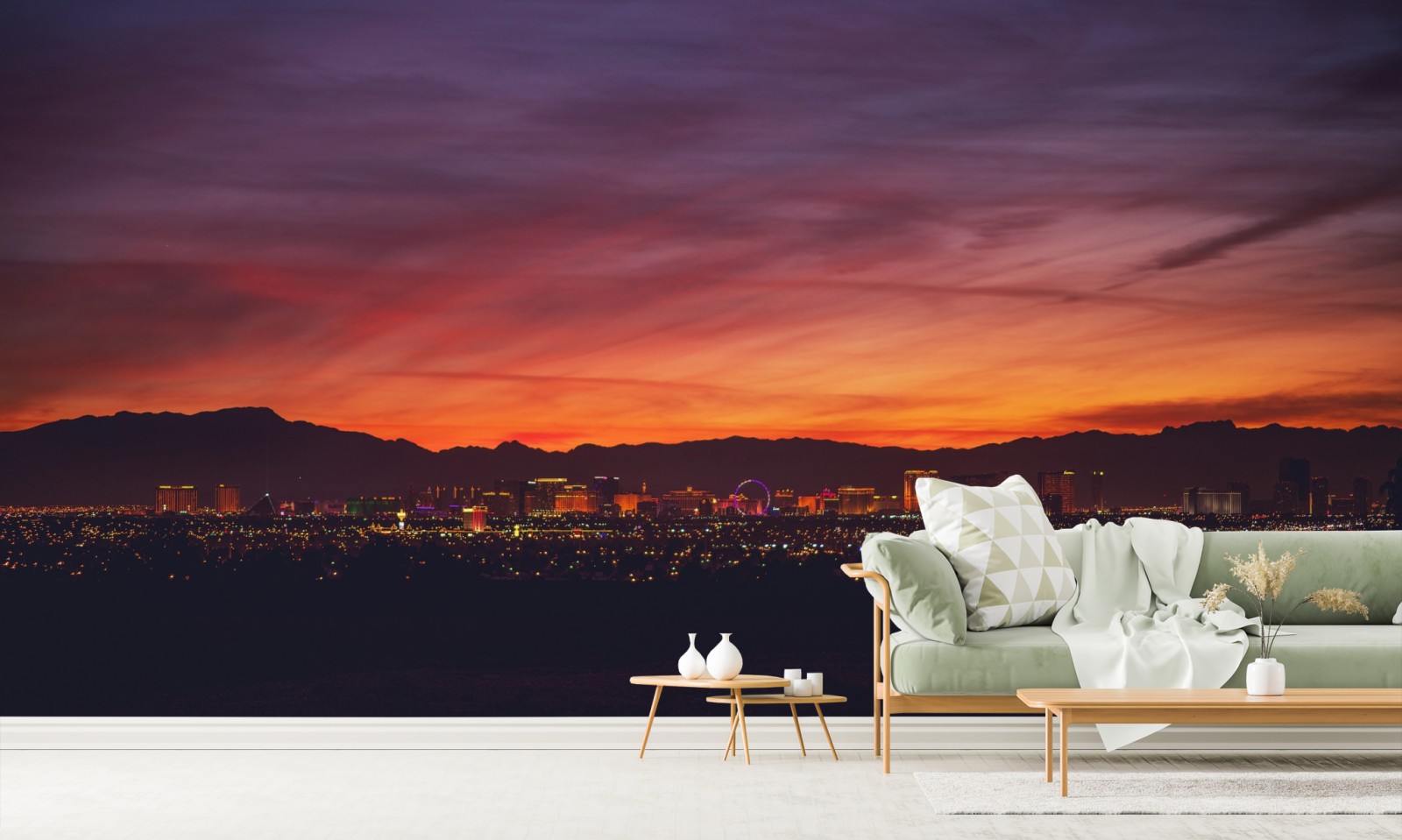 Wprowadź pulsujące światła Las Vegas do wnętrza dzięki tej zachwycającej panoramie miasta o zmierzchu.