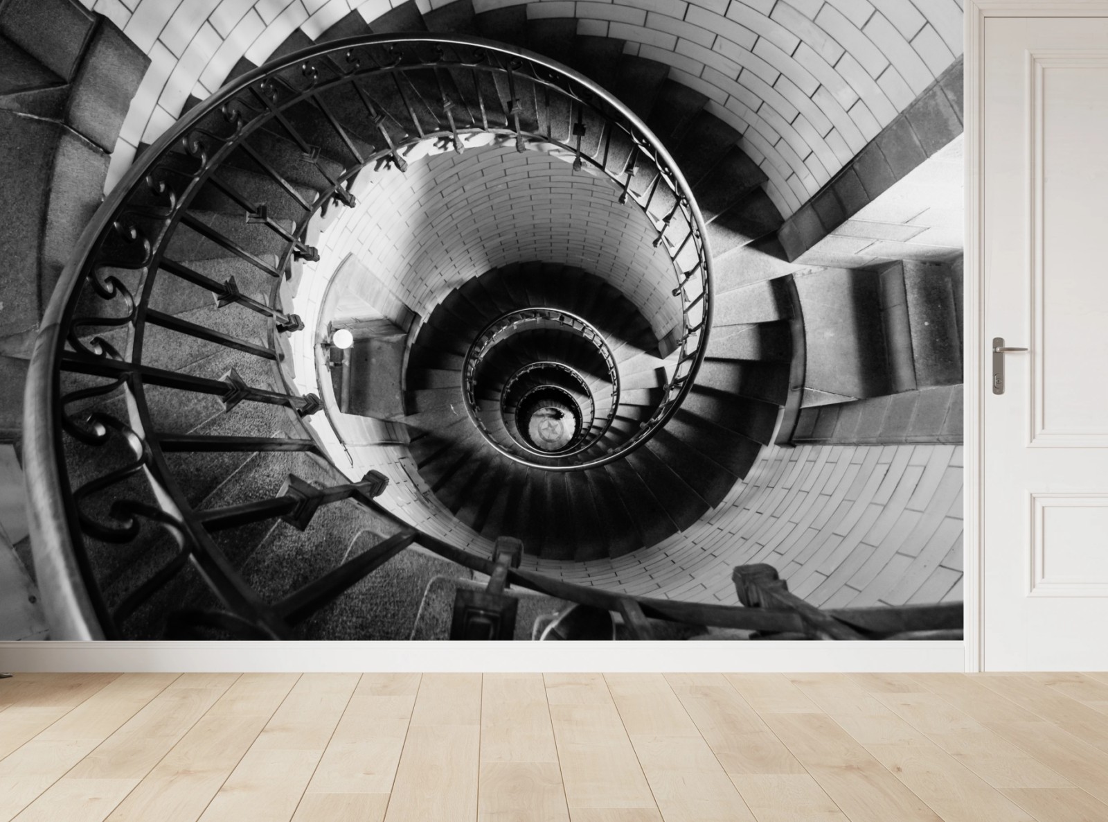 Fototapeta Spiralne schody w monochromatycznej perspektywie