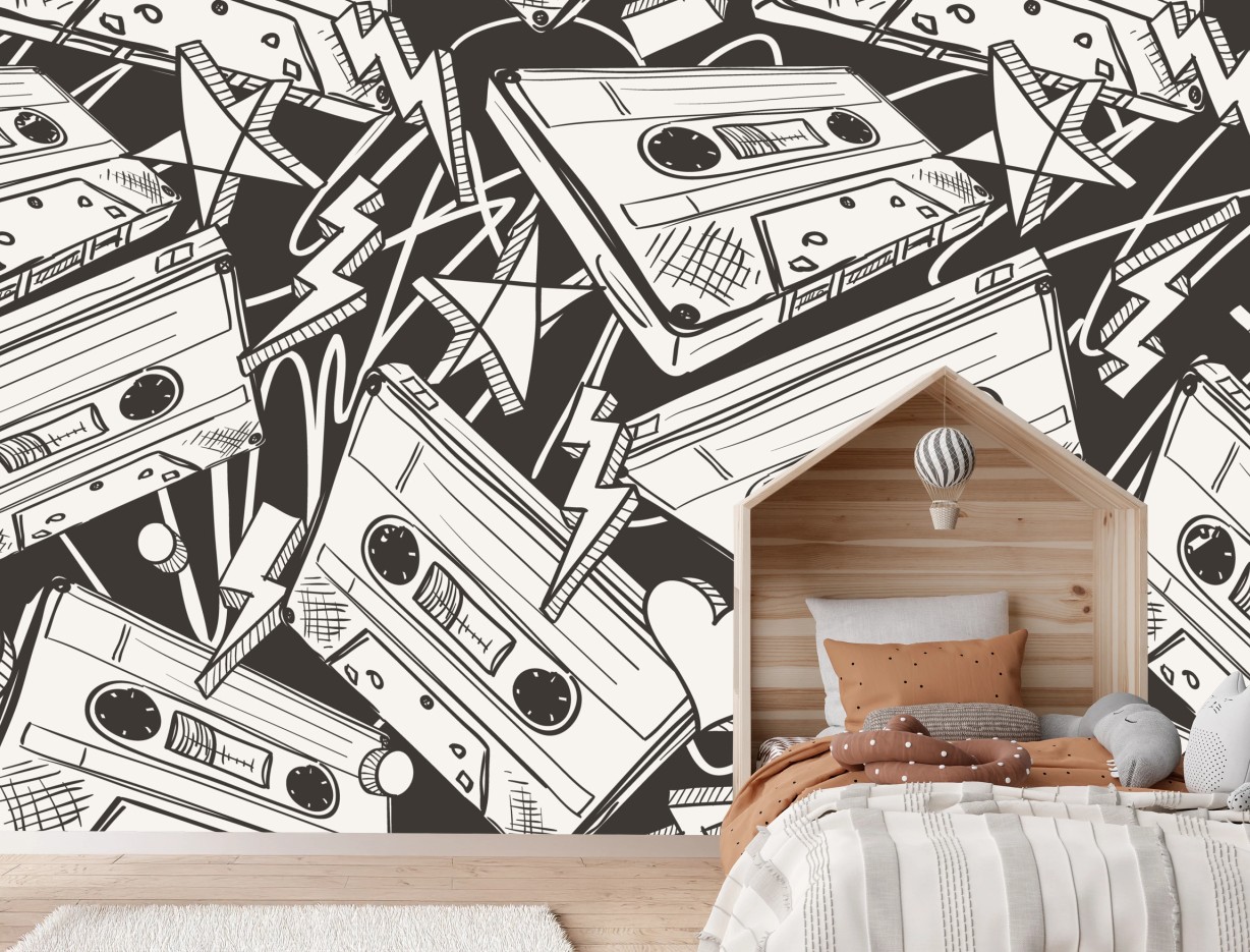Fototapeta Wzór kaset magnetofonowych w stylu retro