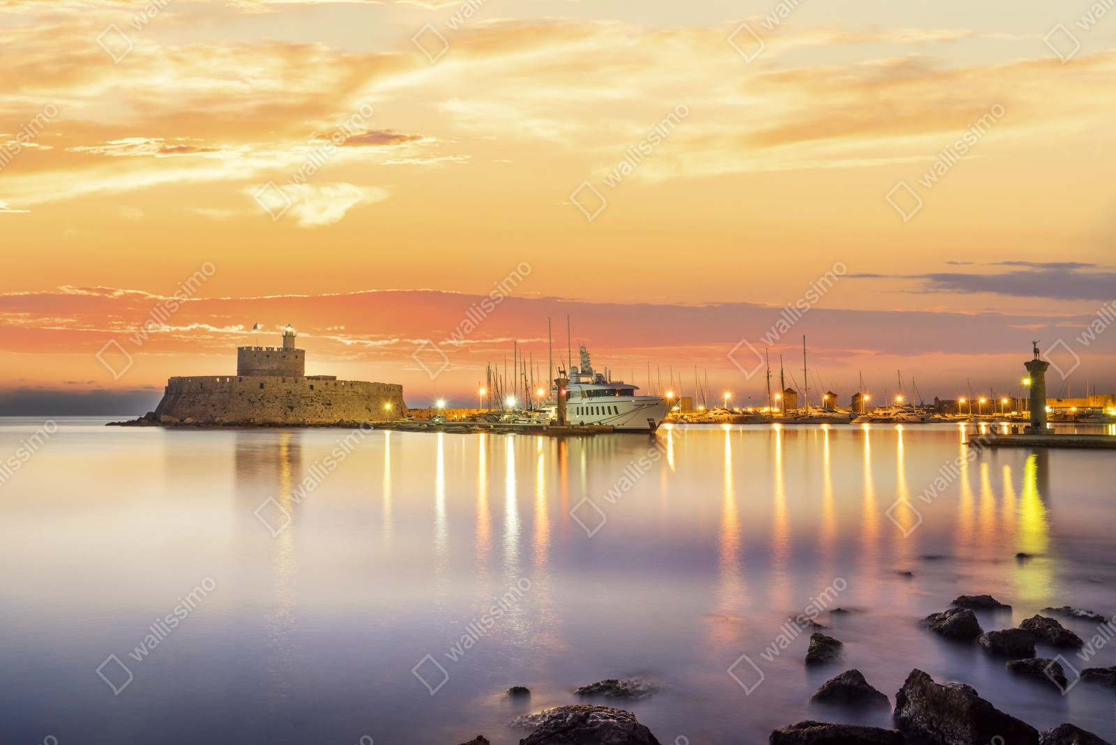 Fototapeta Twierdza Agios Nikolaos w porcie Mandraki, Rodos