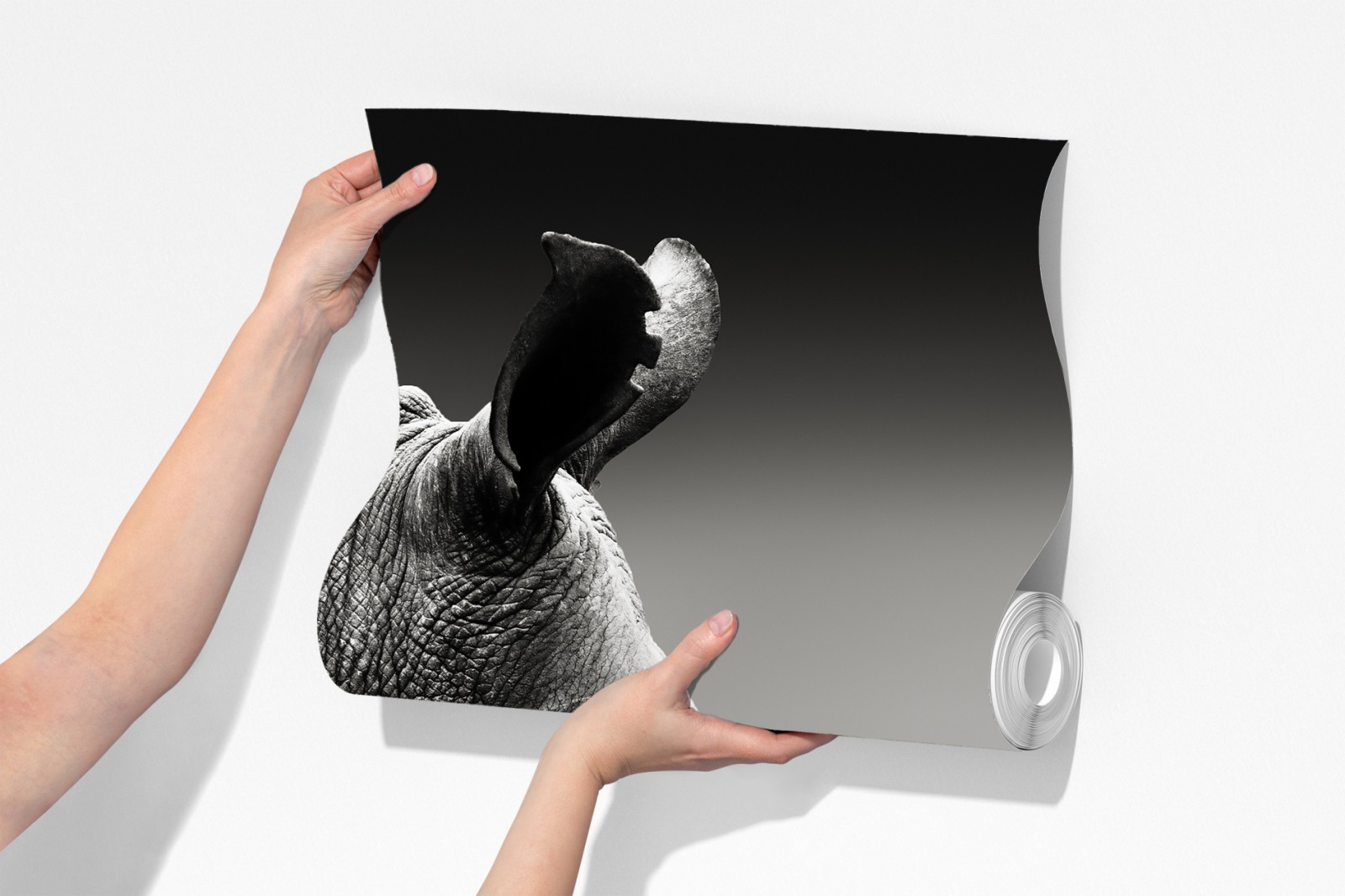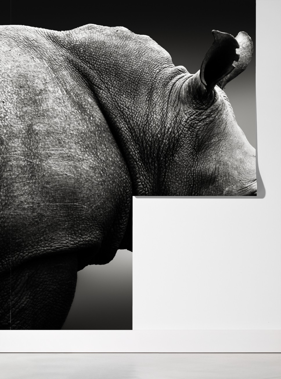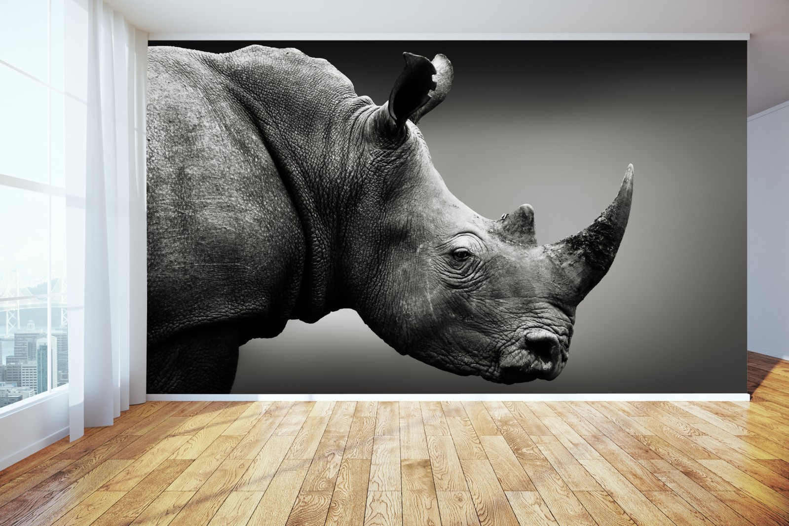 Wyrazisty czarno-biały portret nosorożca, który wnosi dramatyczny klimat dzikiej przyrody do każdego wnętrza.