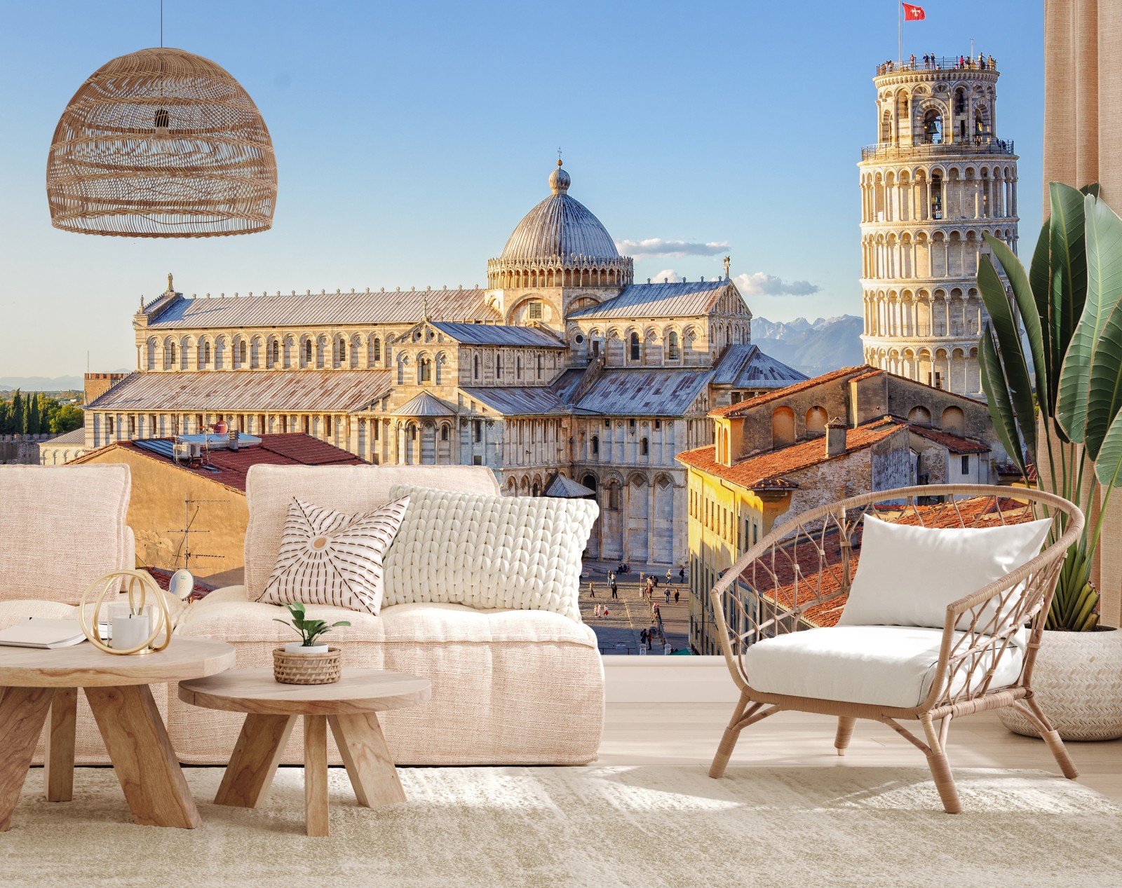 Fototapeta Słoneczny widok na katedrę w Pizie i krzywą wieżę
