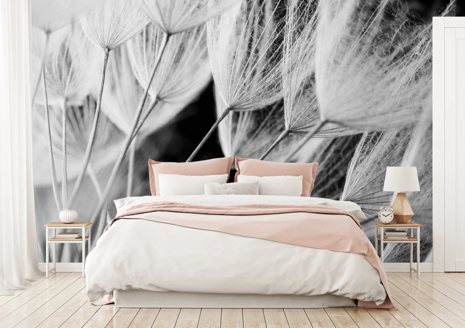 Fototapeta Delikatne zbliżenie nasion dmuchawca czarno-białe