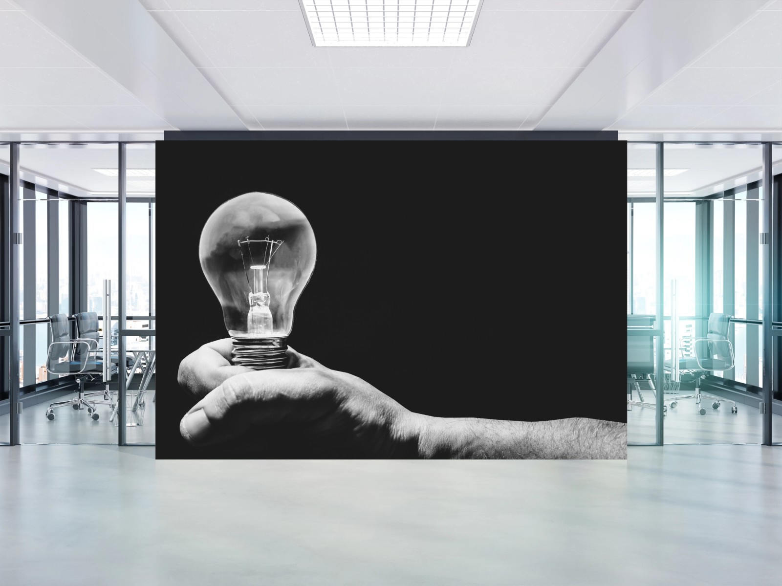 Fototapeta Monochromatyczna ręka trzymająca żarówkę