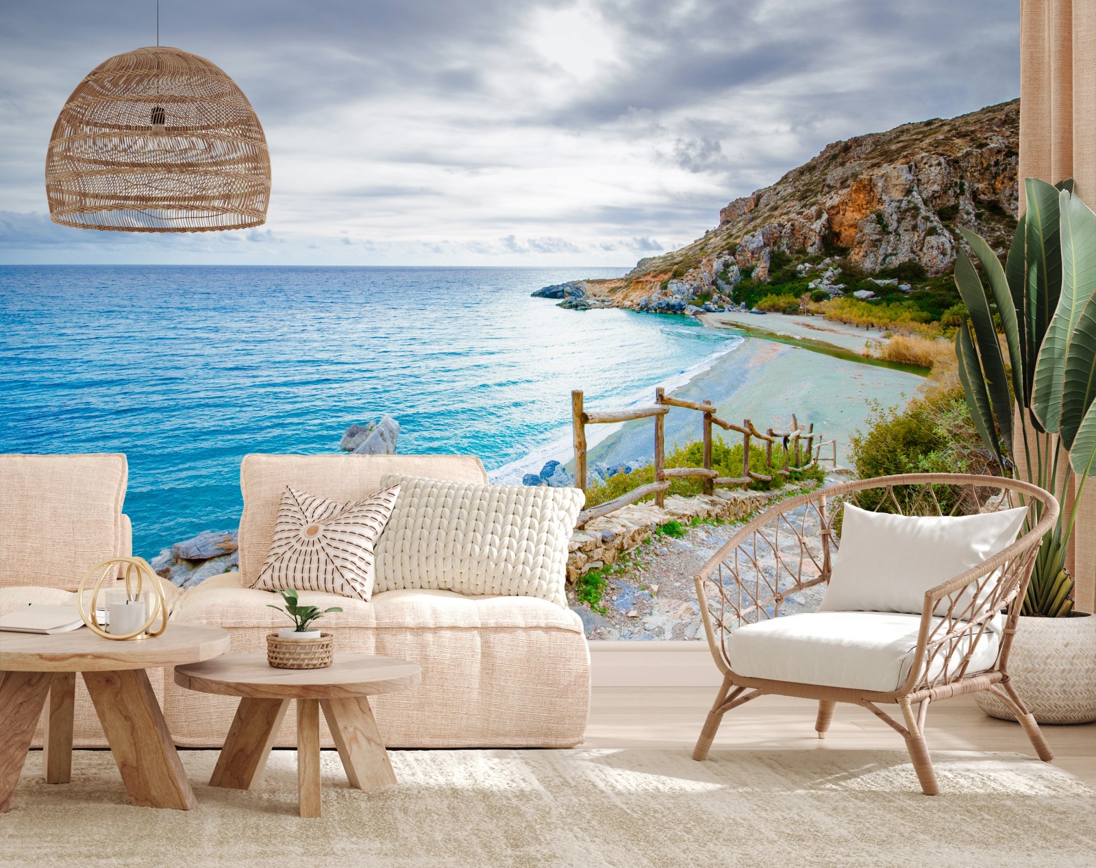 Fototapeta Spokojna turkusowa zatoczka z nadmorską ścieżką