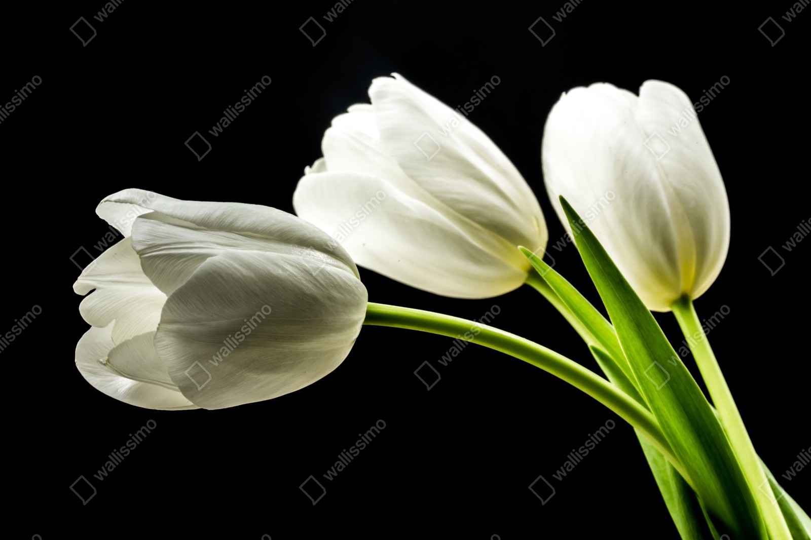 Fototapeta Eleganckie białe tulipany na czarnym tle