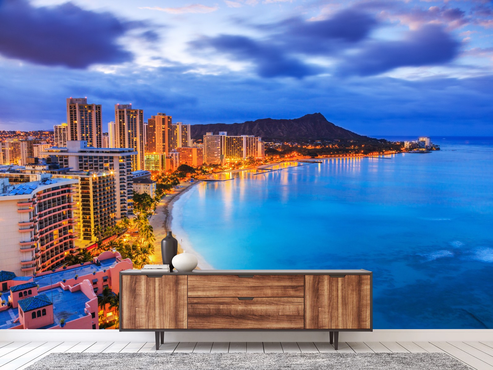 Fototapeta Panorama Waikiki i Diamond Head o zmierzchu