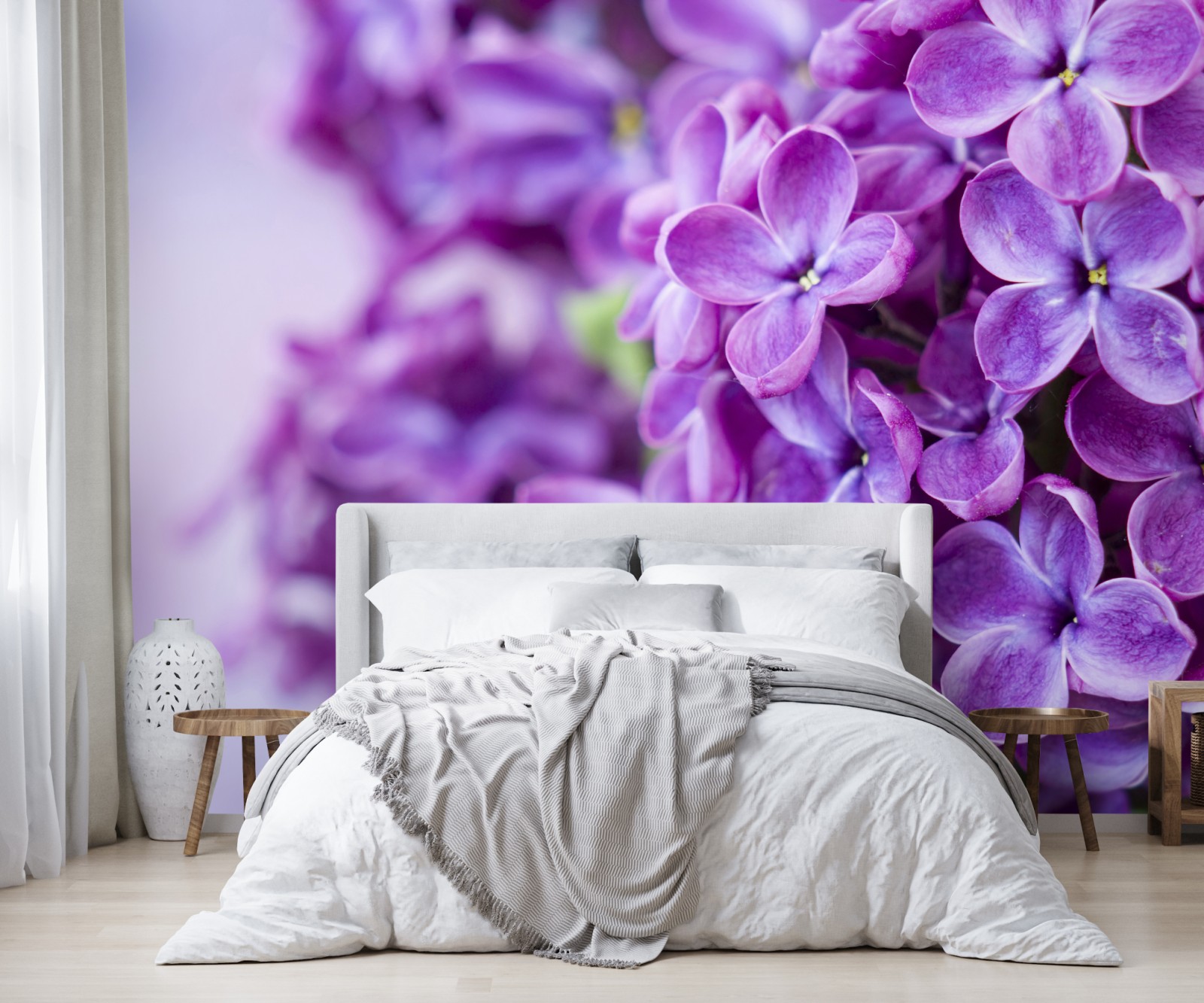 Delikatne zbliżenie fioletowych kwiatów lilaka, które wnosi uspokajający akcent natury do wnętrza.