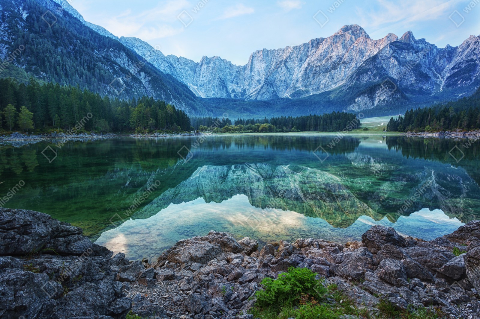 Fototapeta Wczesny poranek nad Jeziorem Fusine, Alpy Julijskie