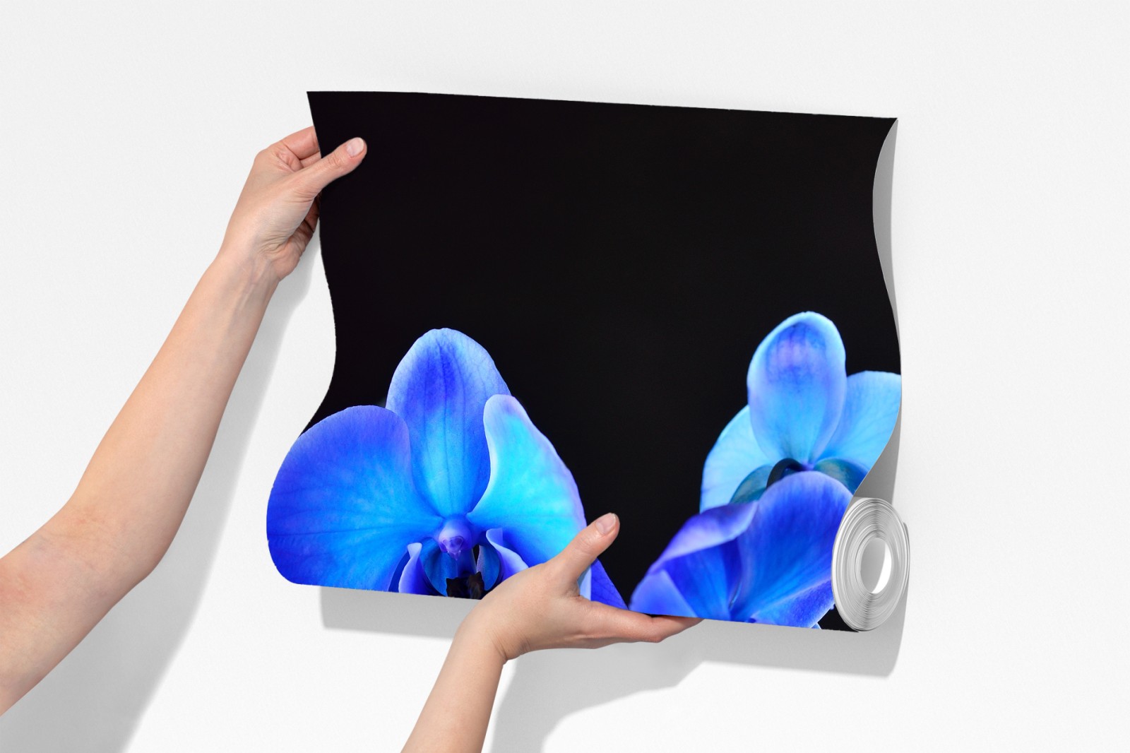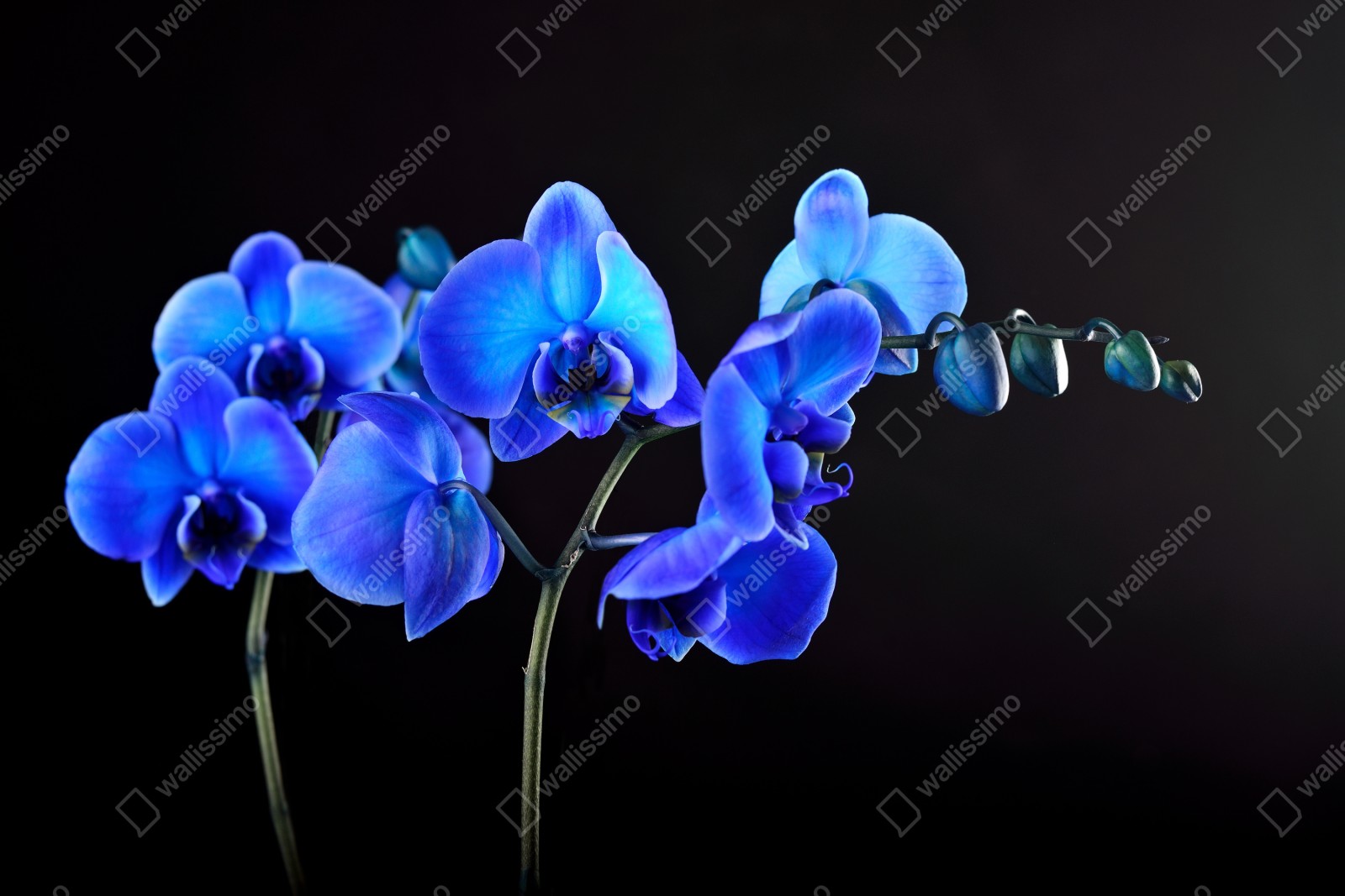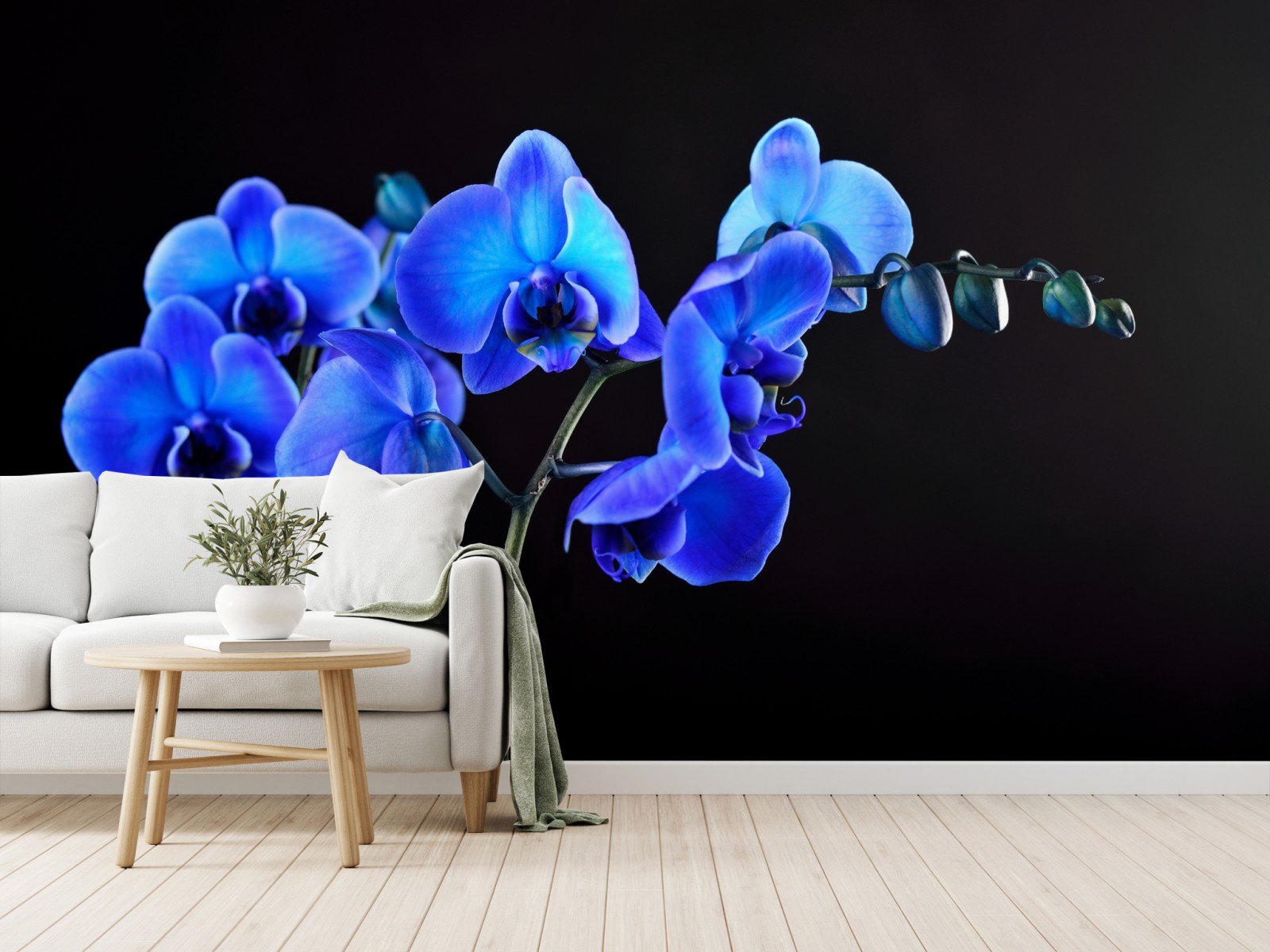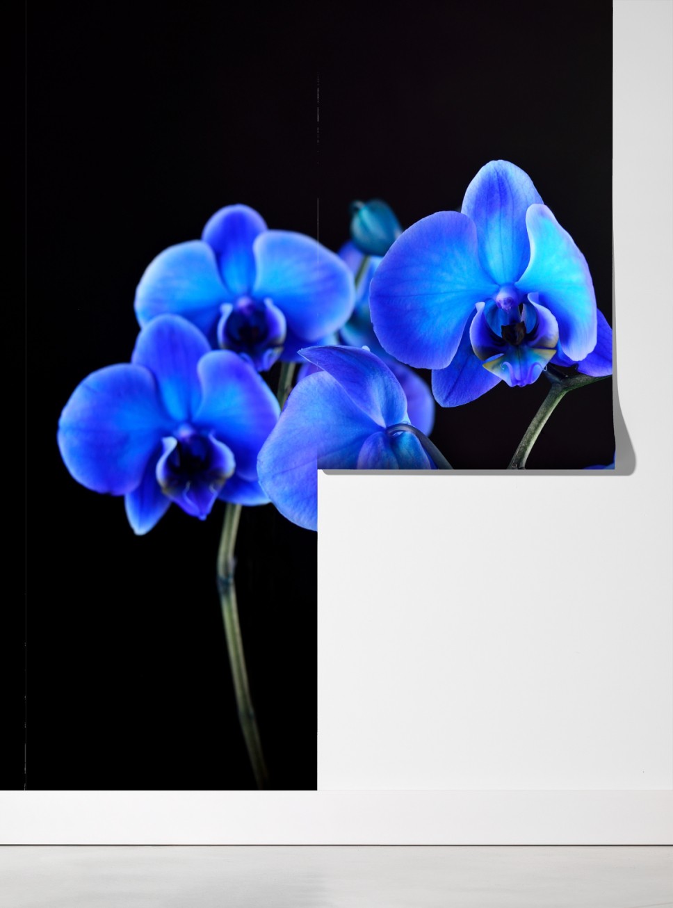 Wprowadź do wnętrza subtelną elegancję dzięki intensywnej niebieskiej orchidei na głębokim czarnym tle.