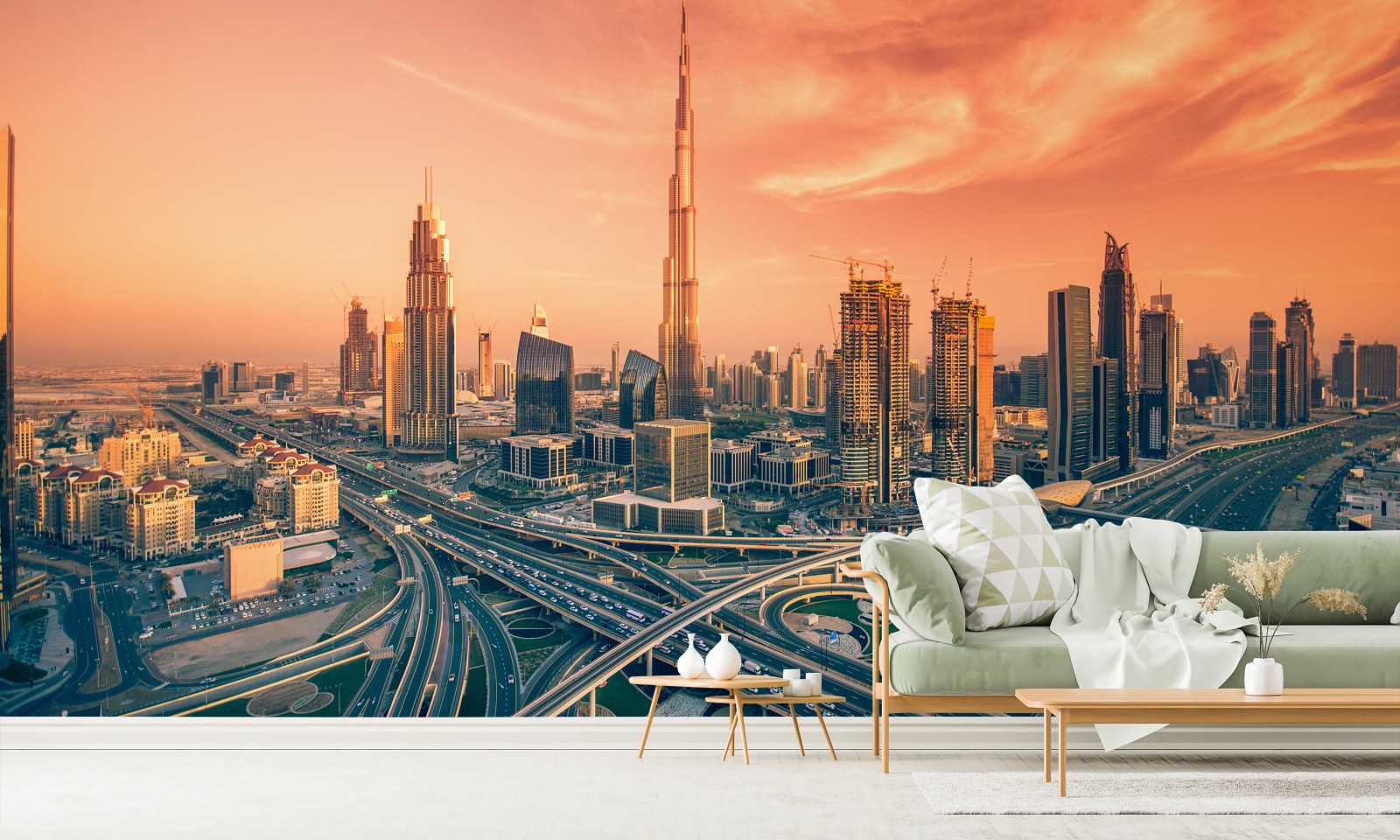 Fototapeta Panorama Dubaju o zachodzie słońca