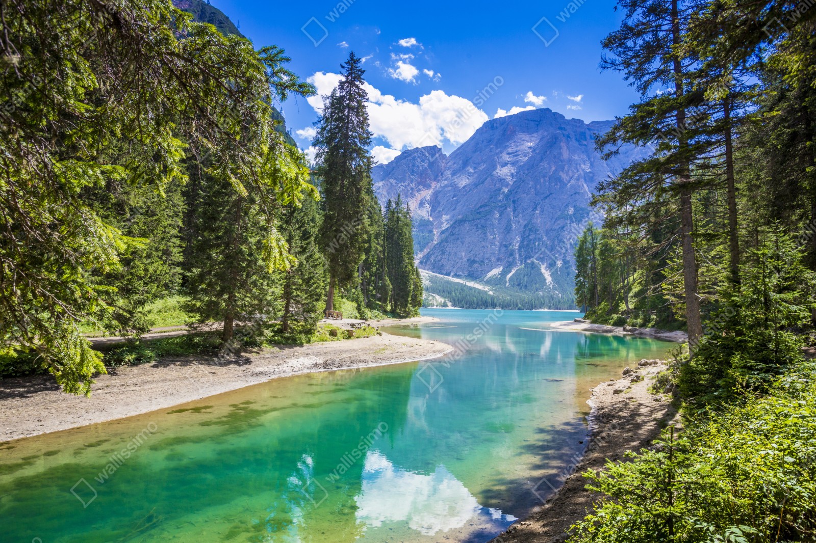 Fototapeta Pragser Wildsee turkusowe górskie jezioro