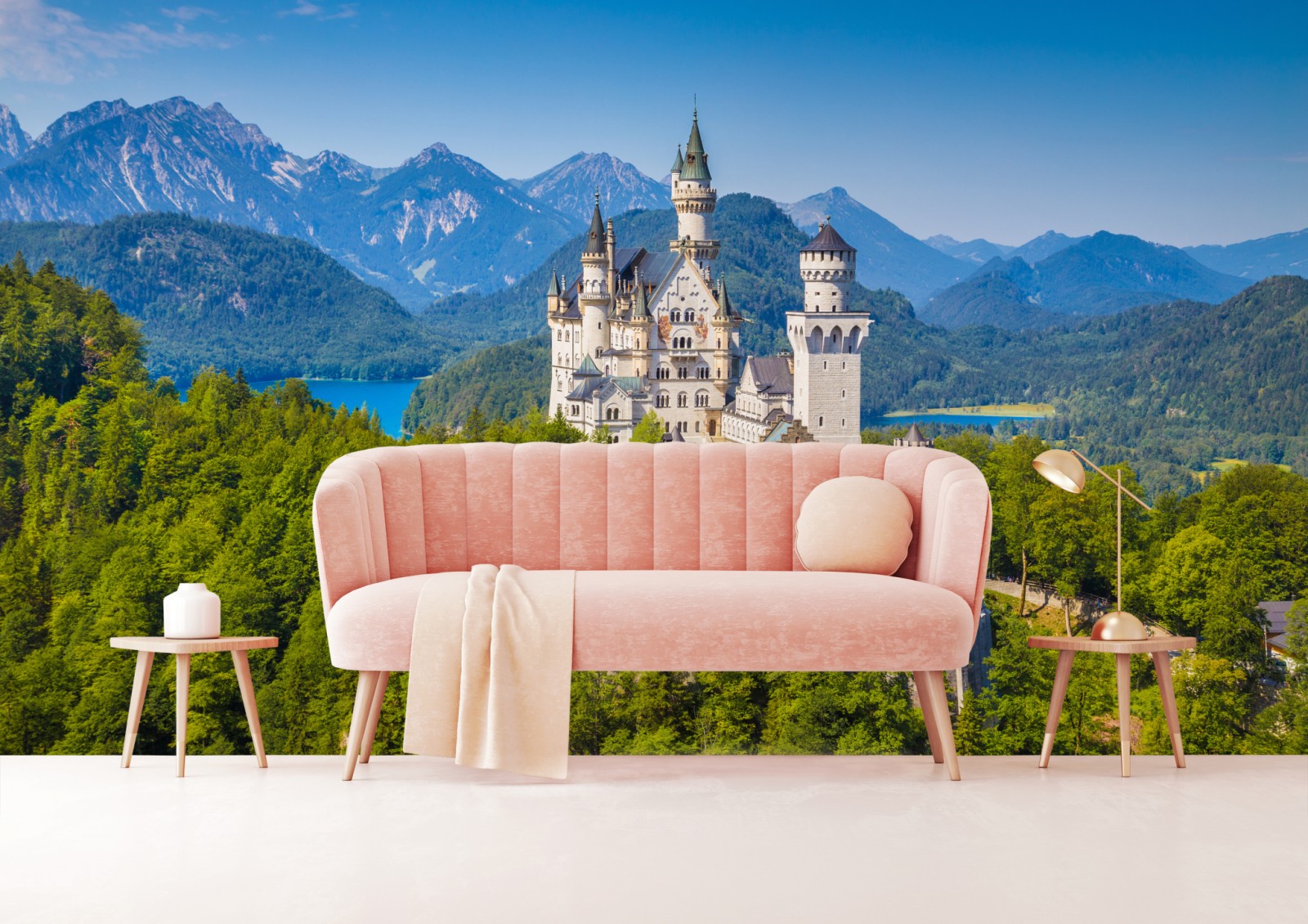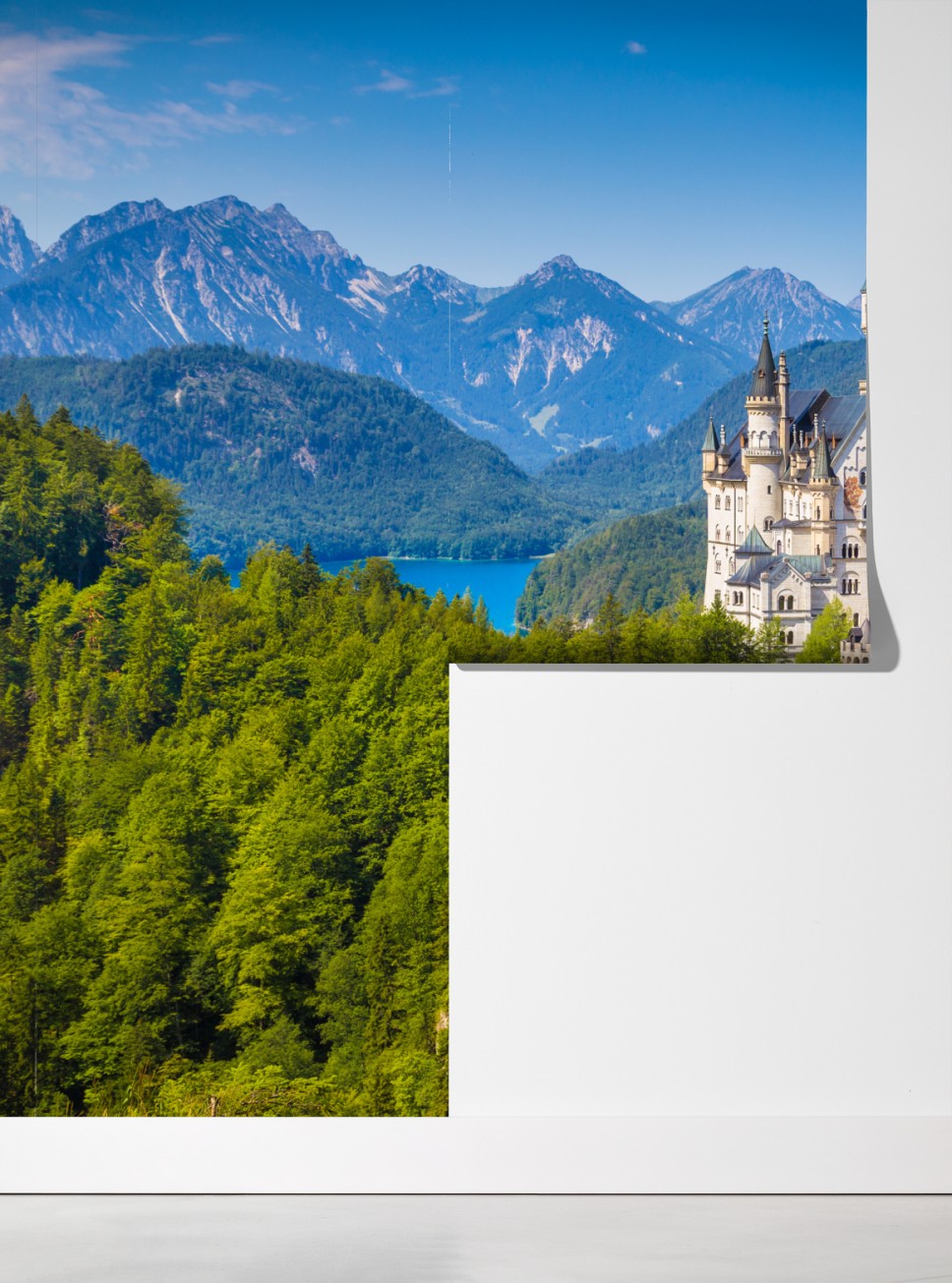 Wprowadź baśniowy klimat do wnętrza dzięki ikonicznemu zamkowi otoczonemu górami, lasami i czystym jeziorem.