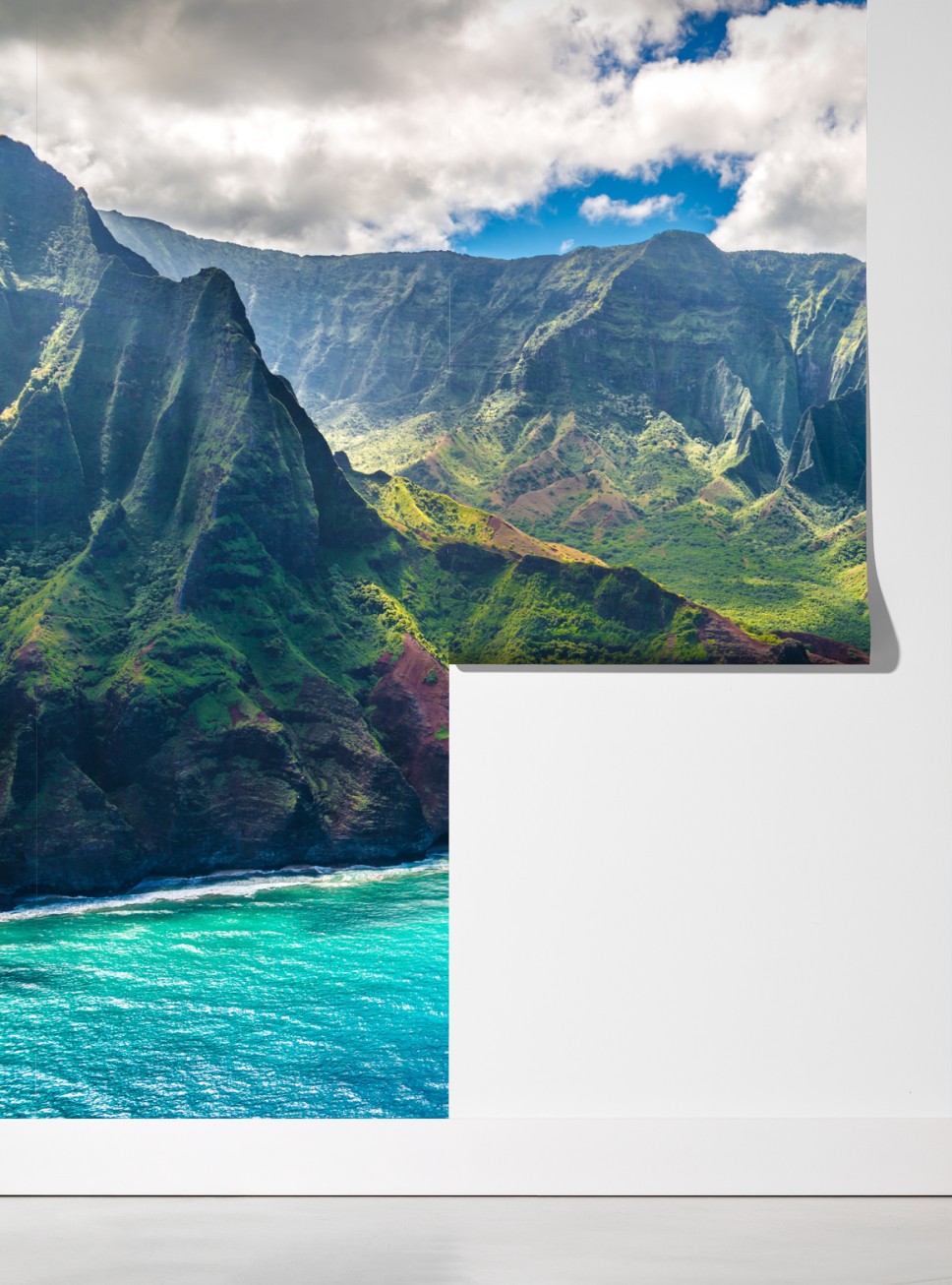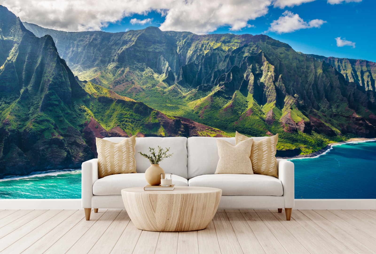 Wprowadź żywe klify i turkusowe wody tropikalnego wybrzeża do swojego wnętrza dzięki tej efektownej panoramie.