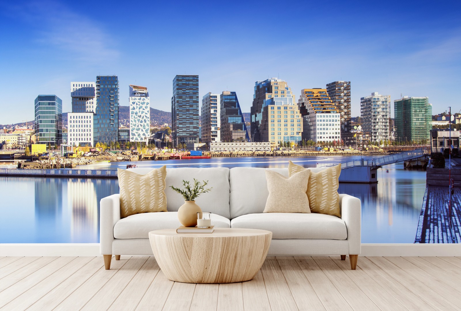 Fototapeta Nowoczesna panorama nabrzeża z odbiciami