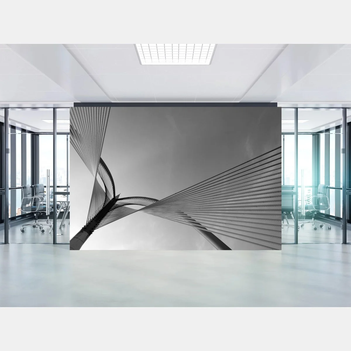 - abstrakcja, architektura, czarno-białe, nowoczesny, most, minimalizm, struktura, symetria, linie, kable