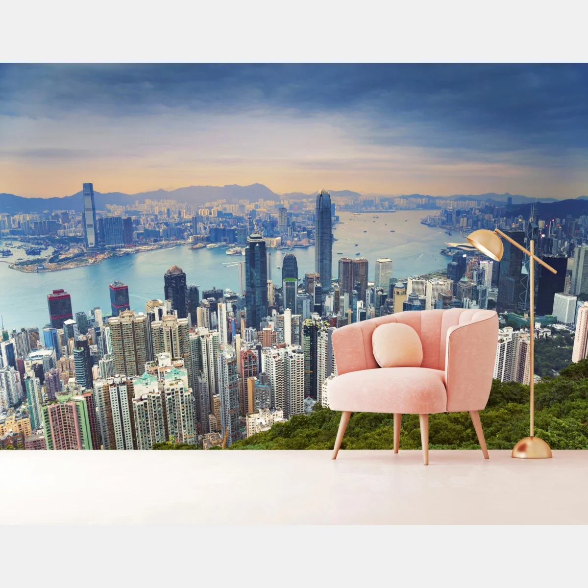 Fototapeta Hong Kong panorama miasta o zmierzchu