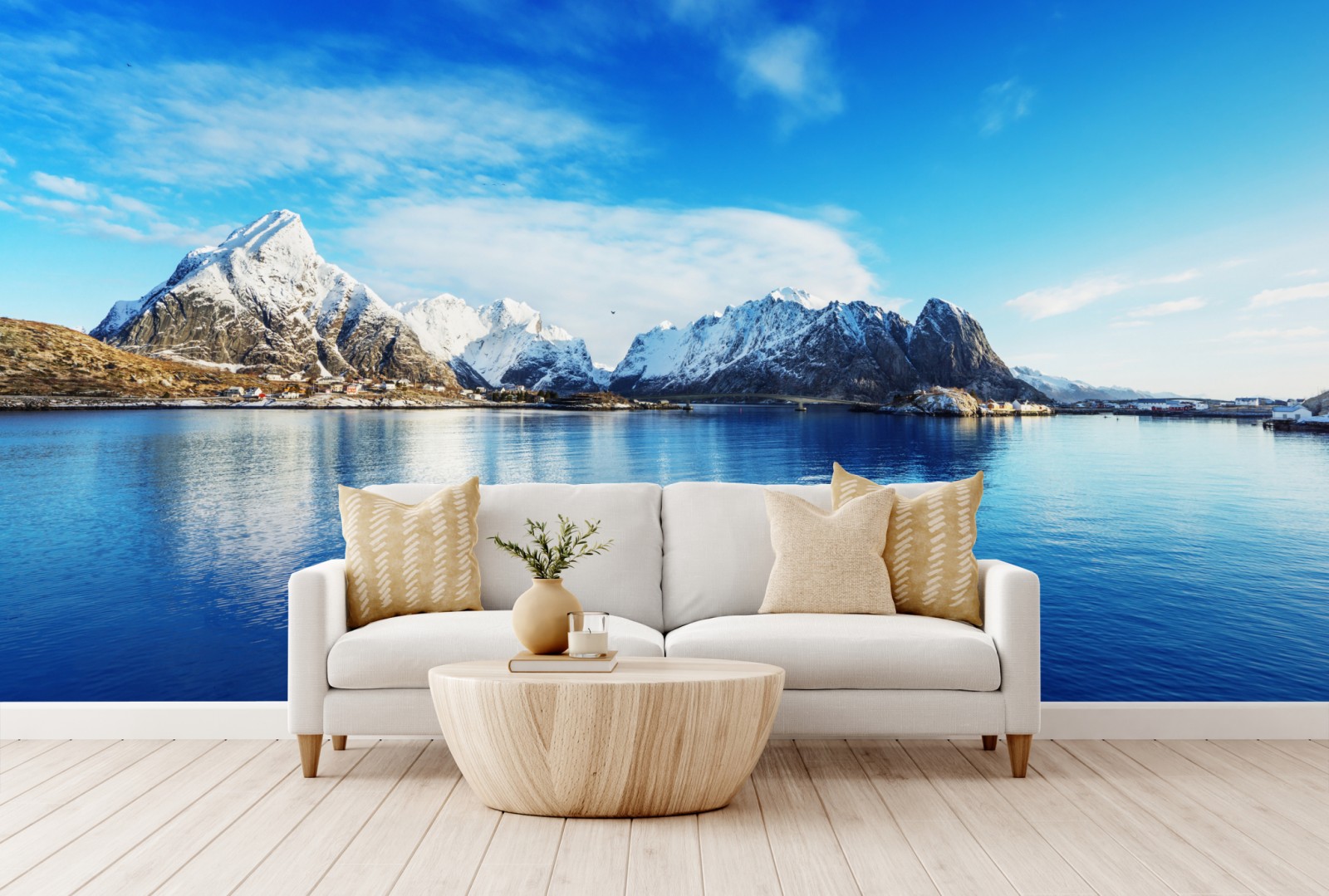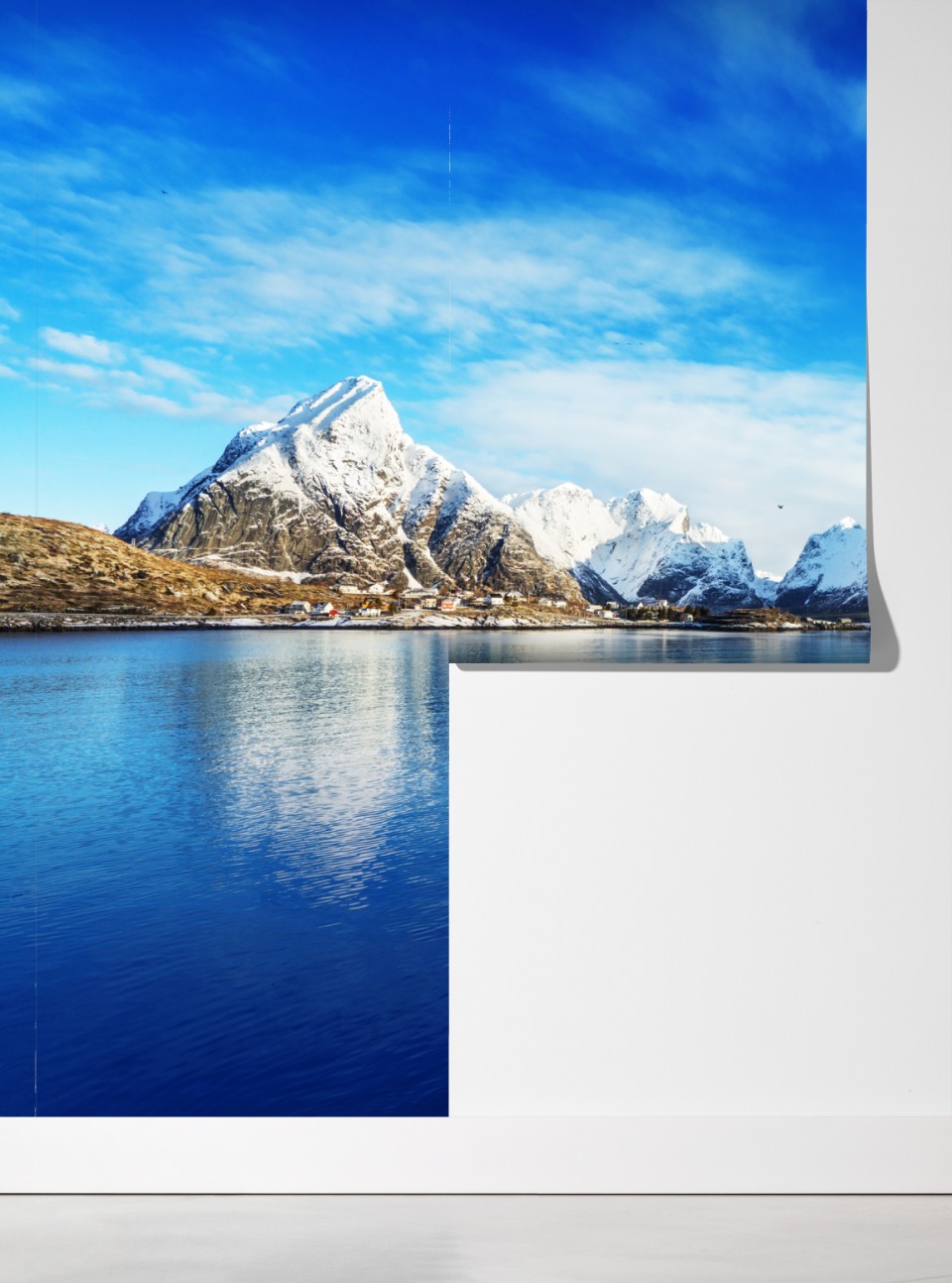 Przenieś spokojną aurę zaśnieżonych Lofotów do wnętrza dzięki temu kojącemu zimowemu pejzażowi.
