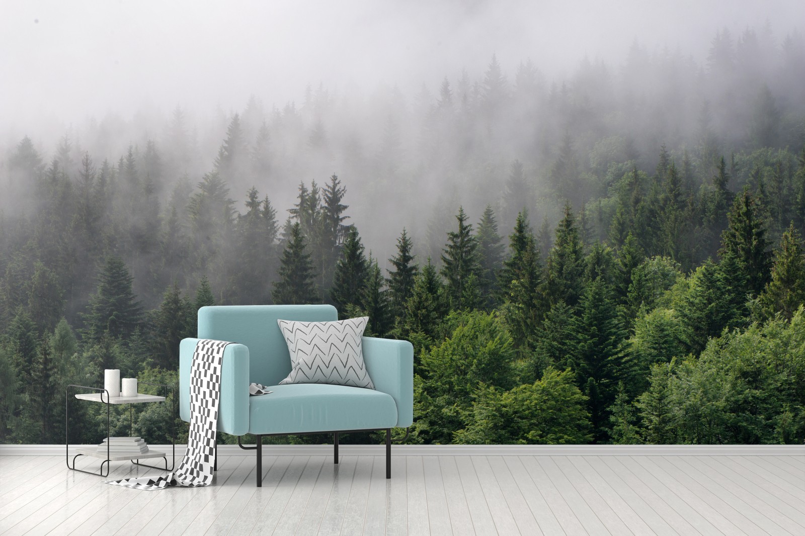 - krajobraz, natura, spokój, zieleń, mgła, dzika przyroda, panoramiczny, drzewa iglaste, mglisty las, atmosfera