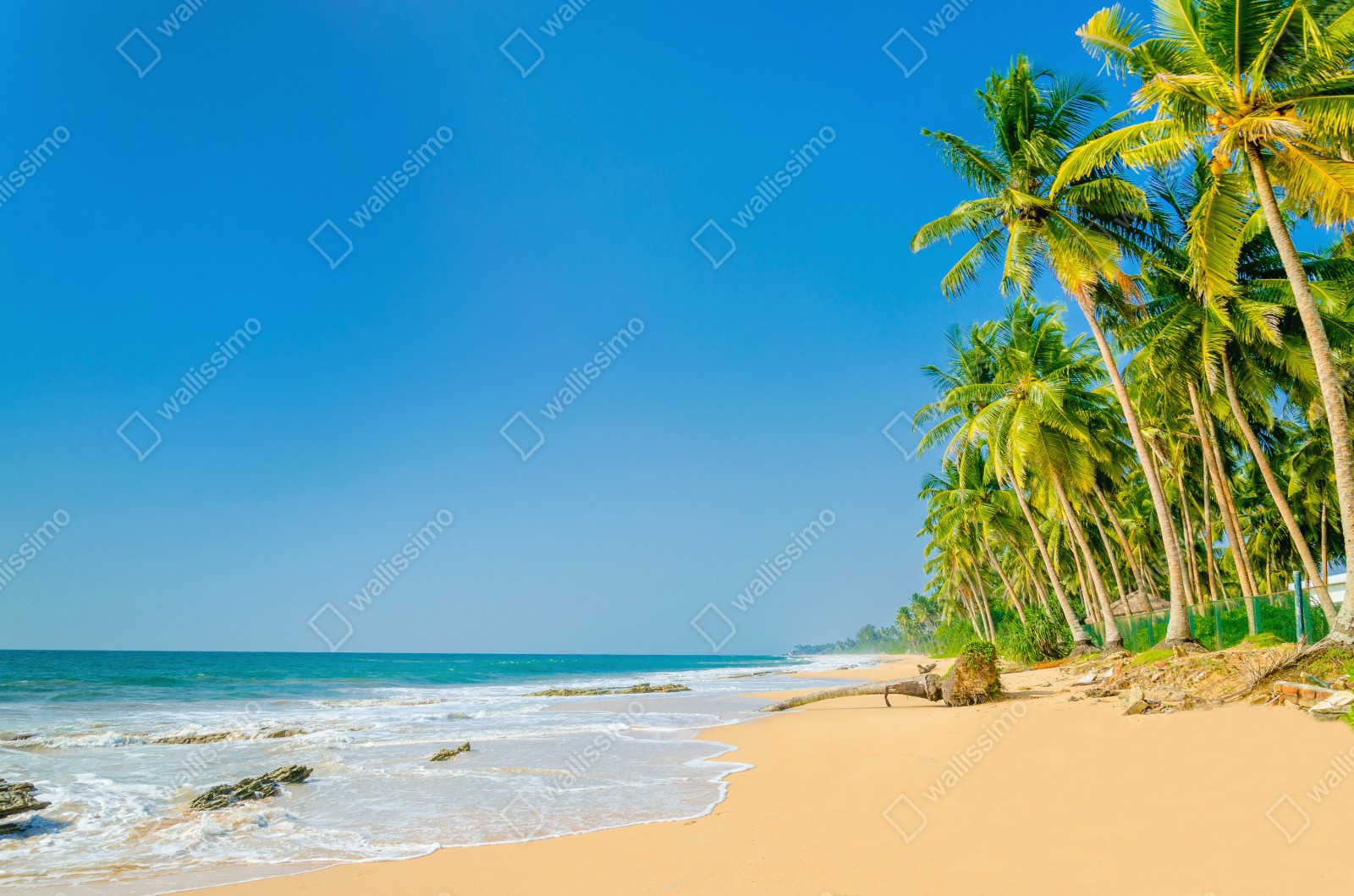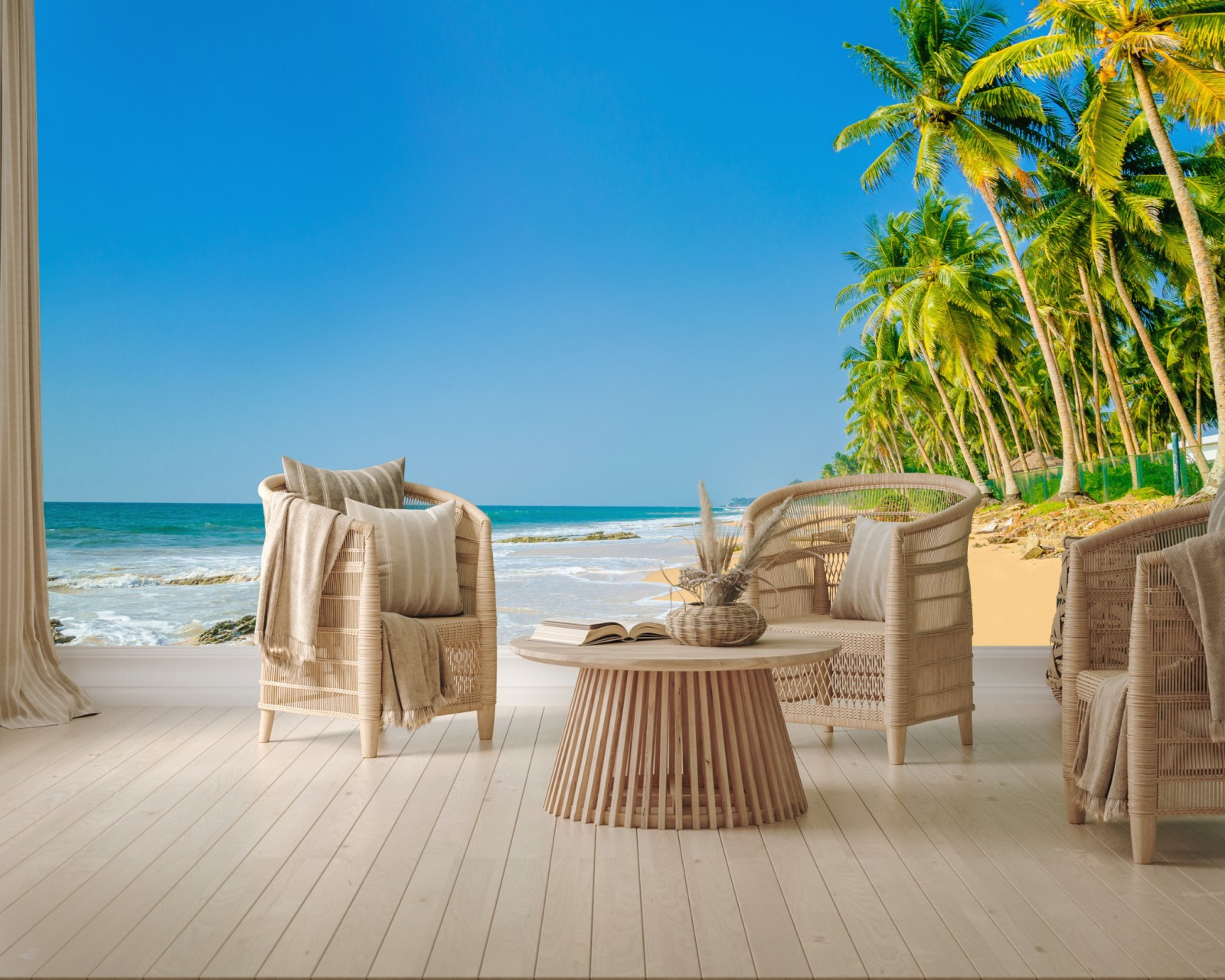 Wprowadź spokojną atmosferę tropikalnej plaży do wnętrza dzięki temu żywemu obrazowi z kołyszącymi się palmami, złotym piaskiem i krystalicznie czystą wodą.