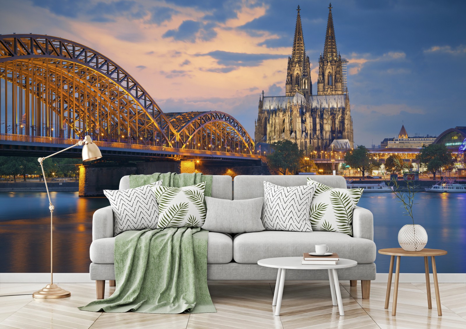 Fototapeta Katedra w Kolonii i most o zmierzchu