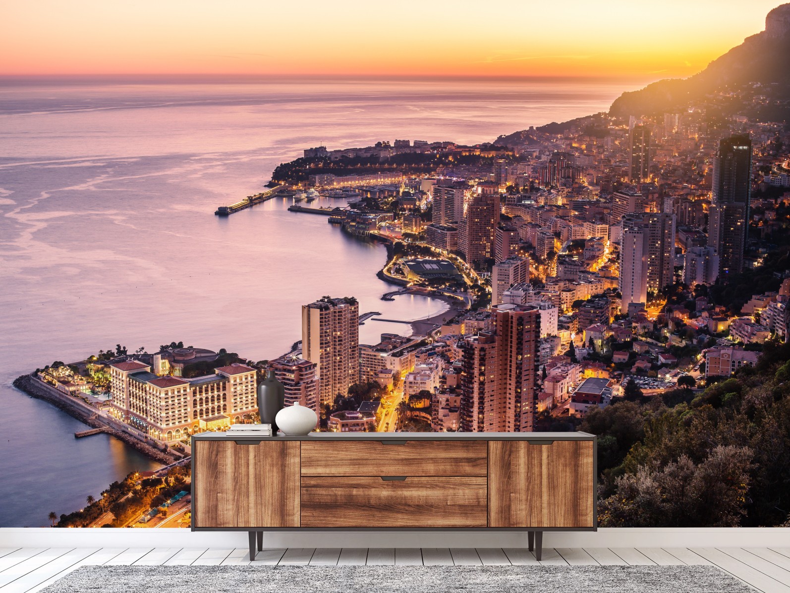 Fototapeta Zachód słońca nad miejskim wybrzeżem