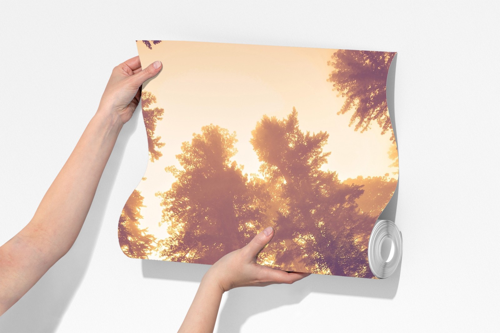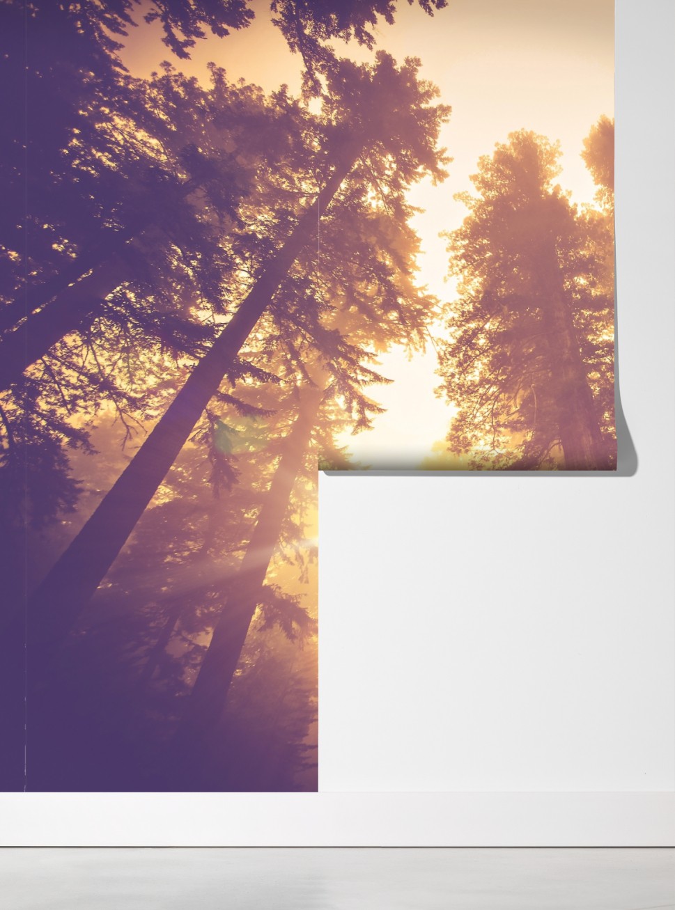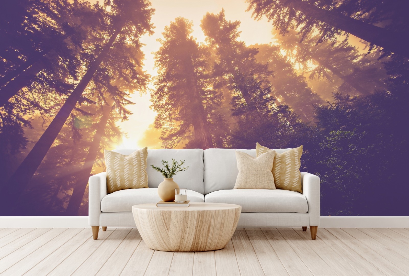 Wprowadź do wnętrza spokój i ciepło dzięki mglistemu lasowi sekwojowemu w złotych, vintage tonacjach.