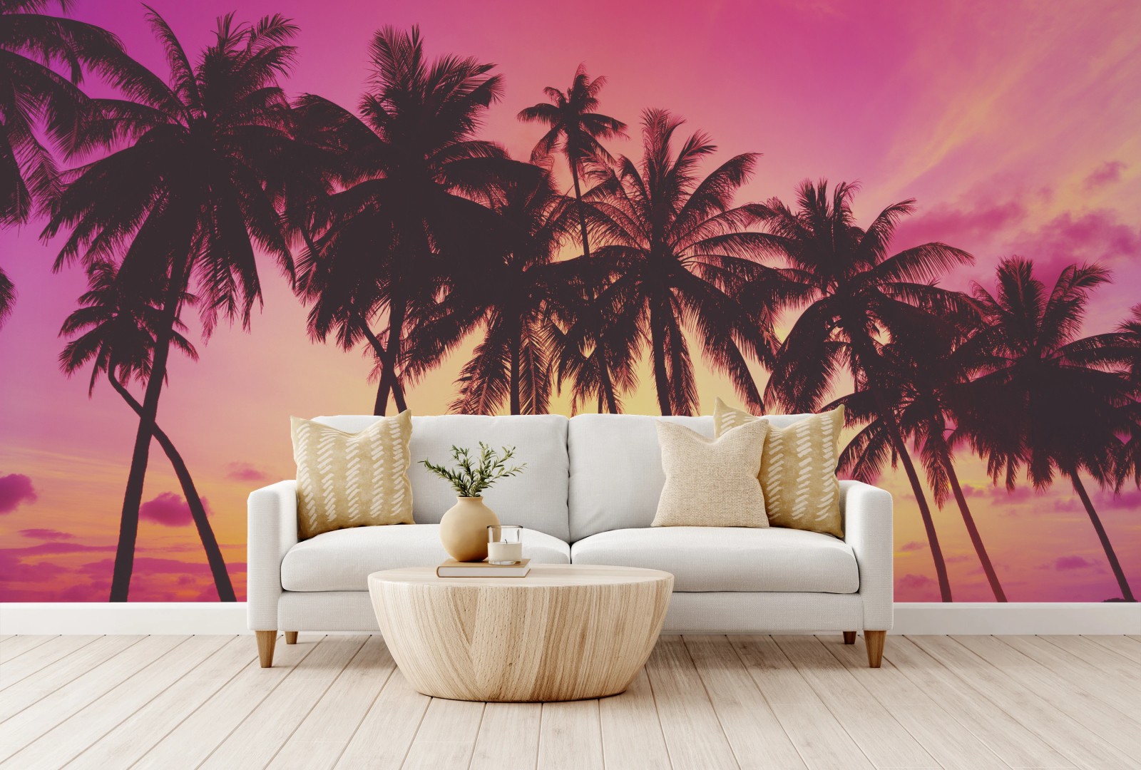 Fototapeta Tropikalny zachód słońca z palmami, Tajlandia