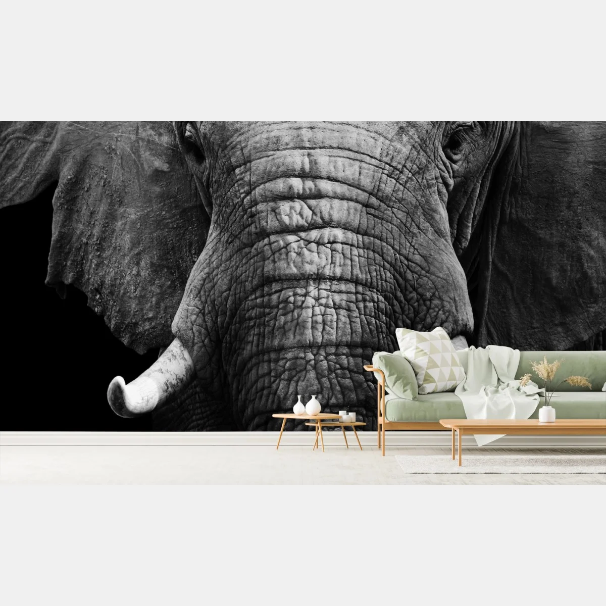 - czarno-białe, zbliżenie, dzika przyroda, majestatyczny, słoń, portret słonia, kły, ochrona przyrody, afryka, faktura skóry