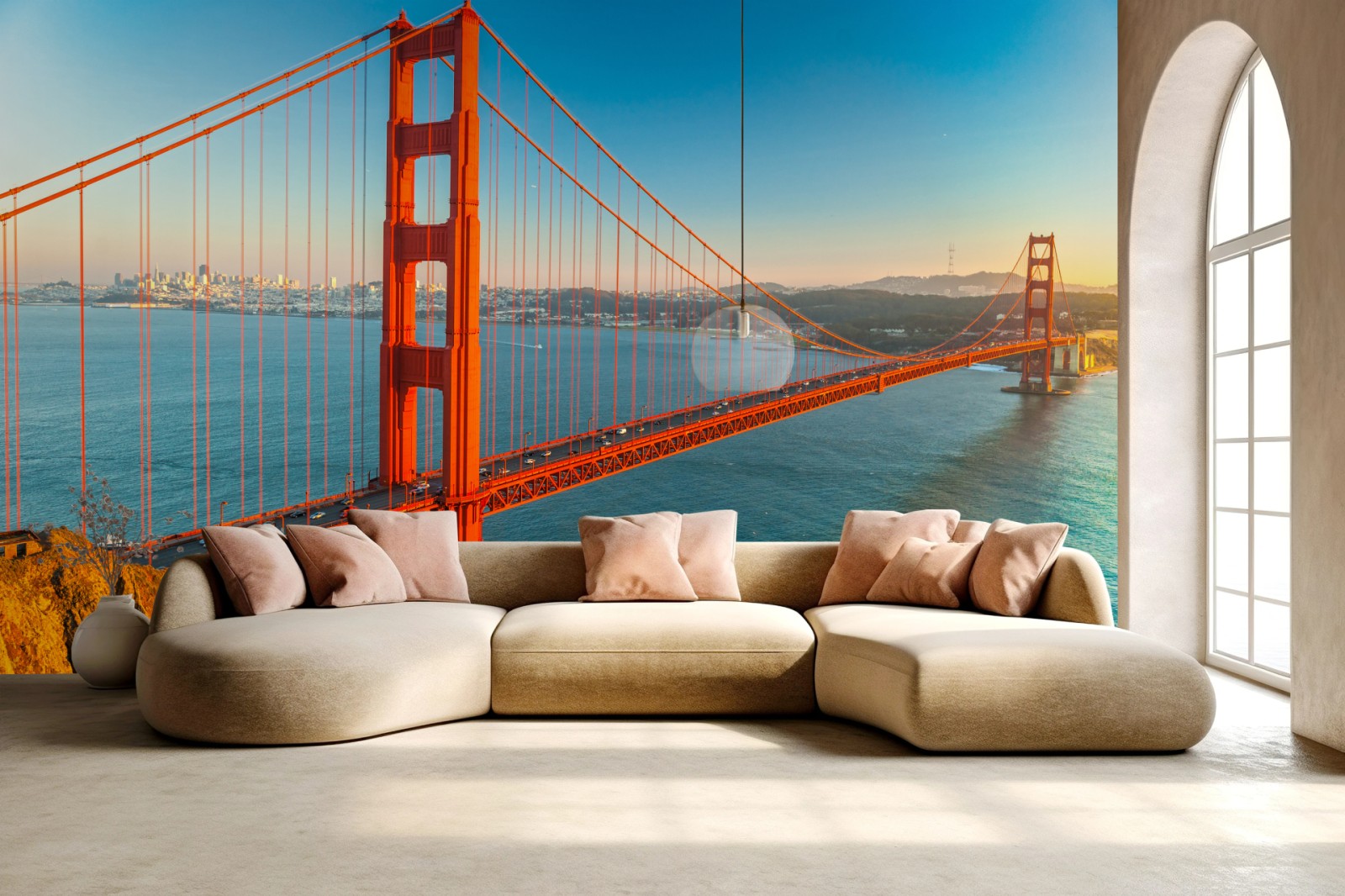- panorama, podróże, zachód słońca, zatoka, most, pejzaż miejski, most golden gate, san francisco, wiszący most, punkt orientacyjny