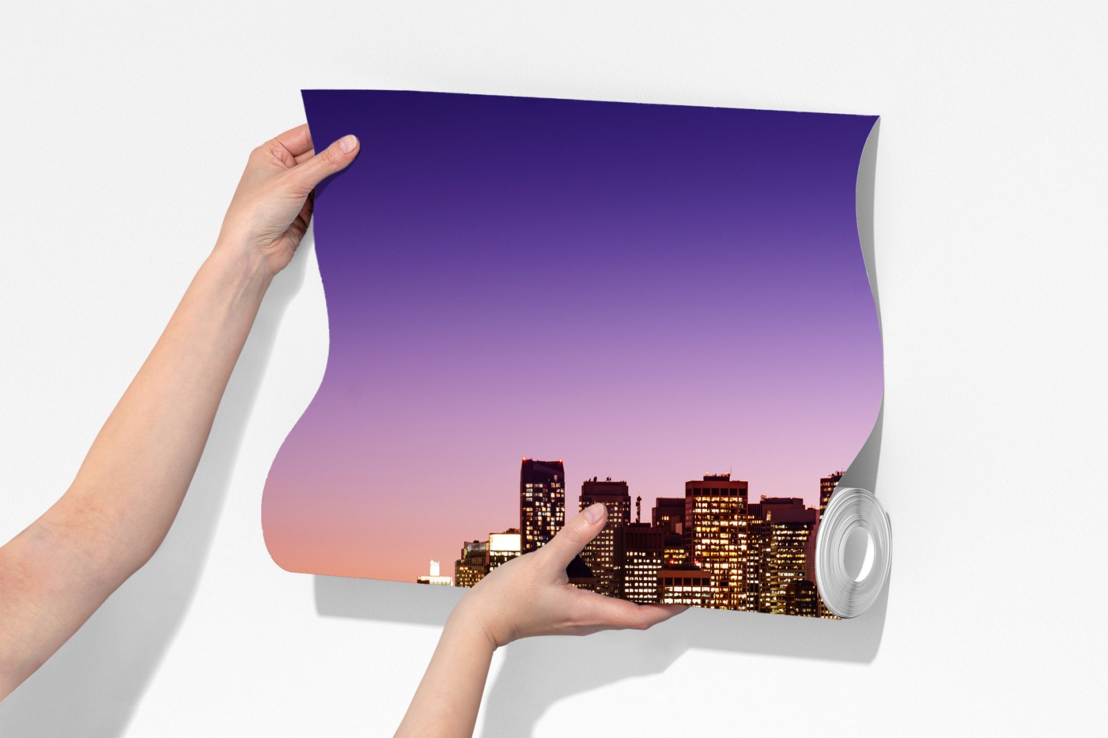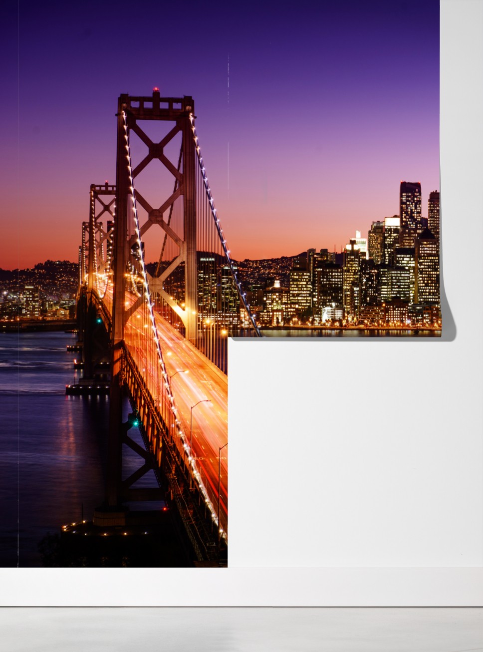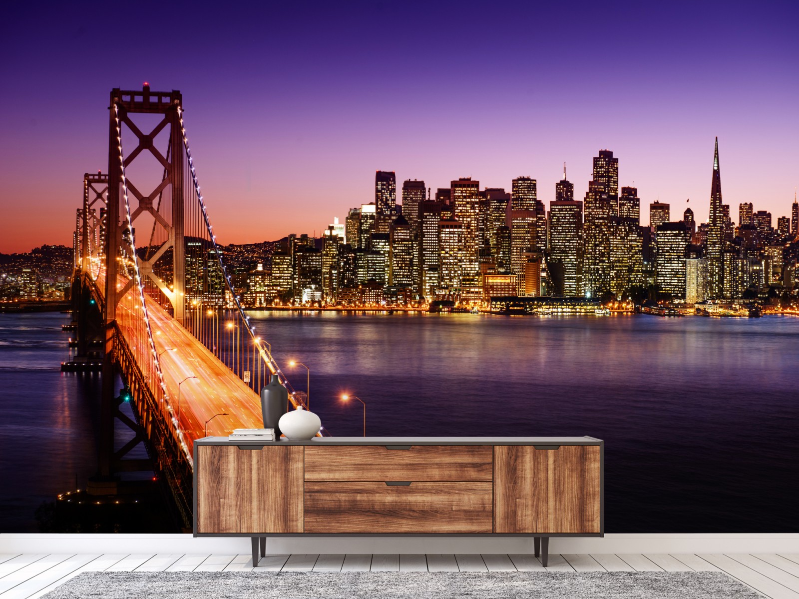 Wprowadź tętniącą życiem panoramę San Francisco do swojego wnętrza dzięki tej dramatycznej fotografii o zachodzie słońca, która doda nowoczesnej miejskiej elegancji każdej ścianie.