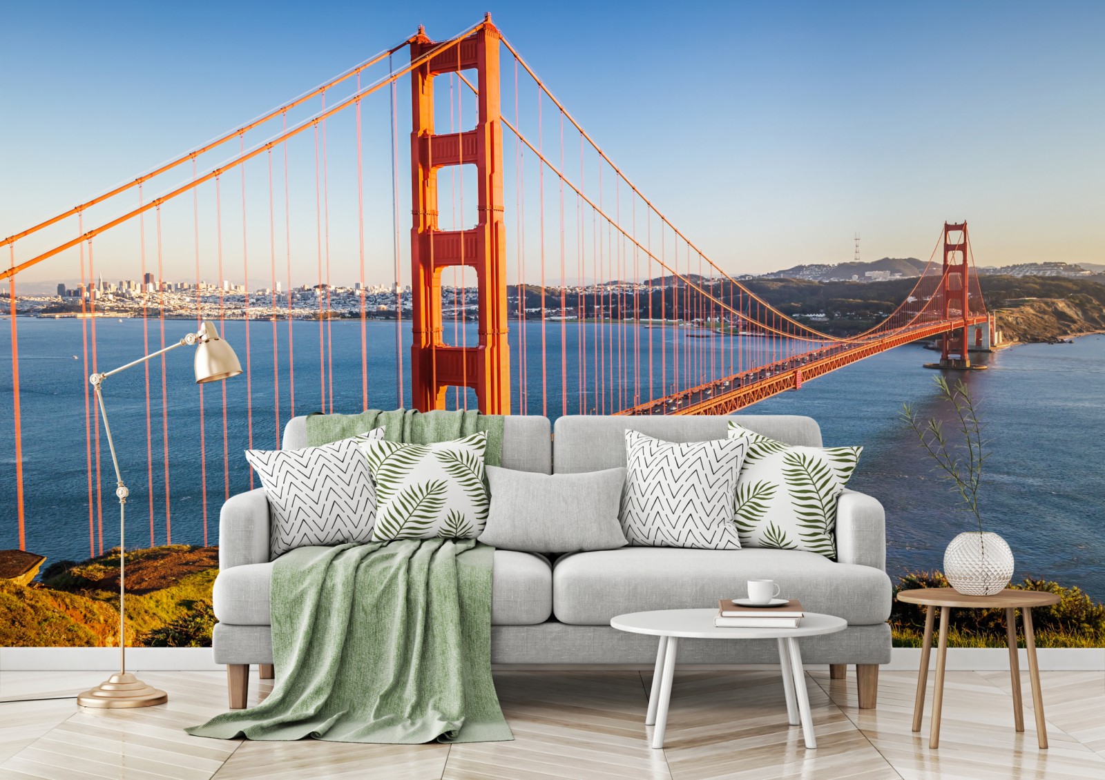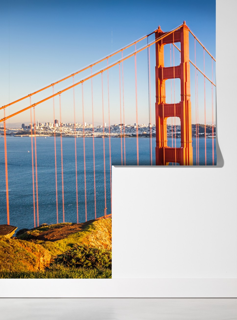 Dodaj do wnętrza ikoniczny most Golden Gate i błękit zatoki dzięki temu żywemu panoramicznemu obrazowi.