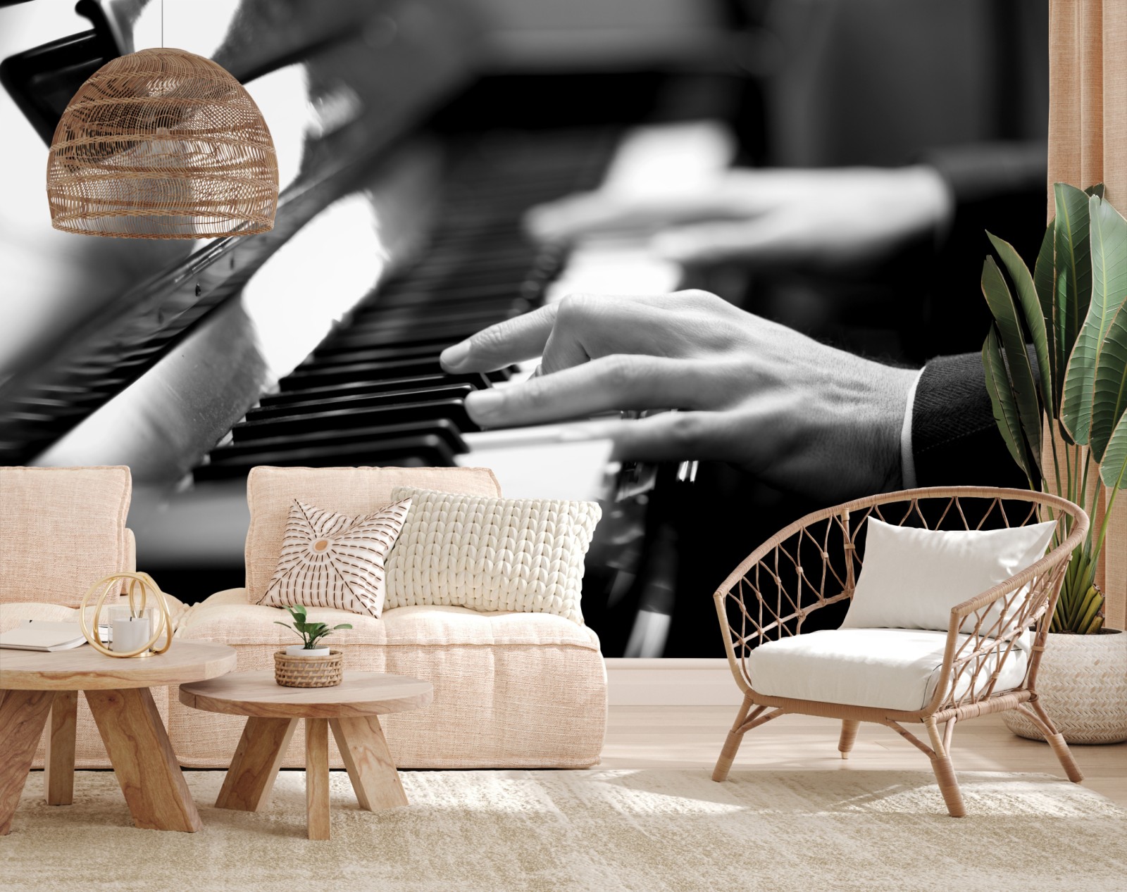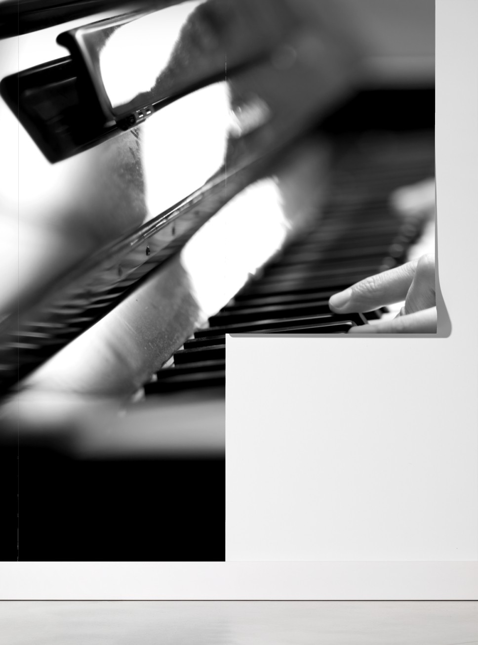 Dodaj do wnętrza ponadczasowy muzyczny akcent dzięki temu wyrazistemu czarno-białemu zbliżeniu rąk przy klawiaturze fortepianu.