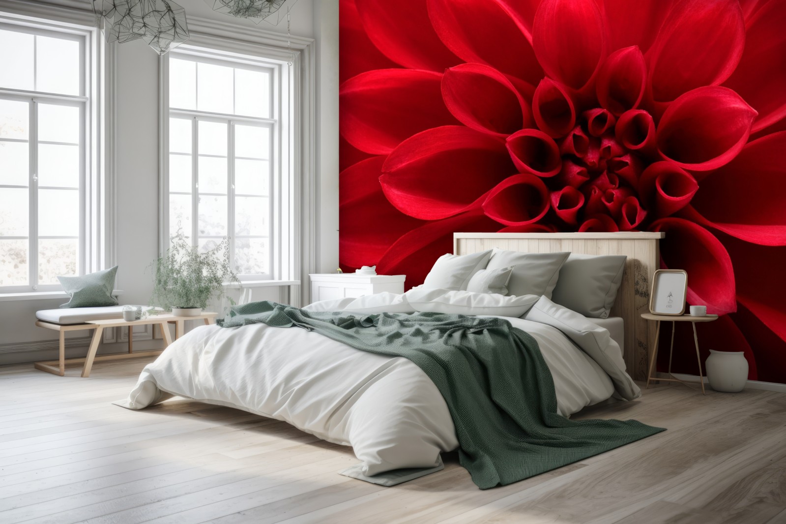 Dodaj do wnętrza intensywną naturalną elegancję dzięki dramatycznemu zbliżeniu czerwonej dalii.