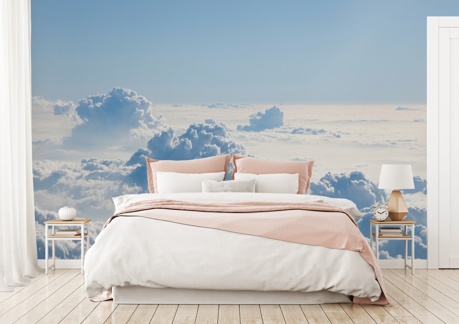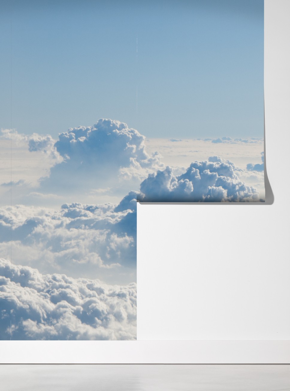 Wprowadź spokój i przestrzeń do wnętrza dzięki temu delikatnemu pejzażowi chmur w miękkich błękitnych tonach.