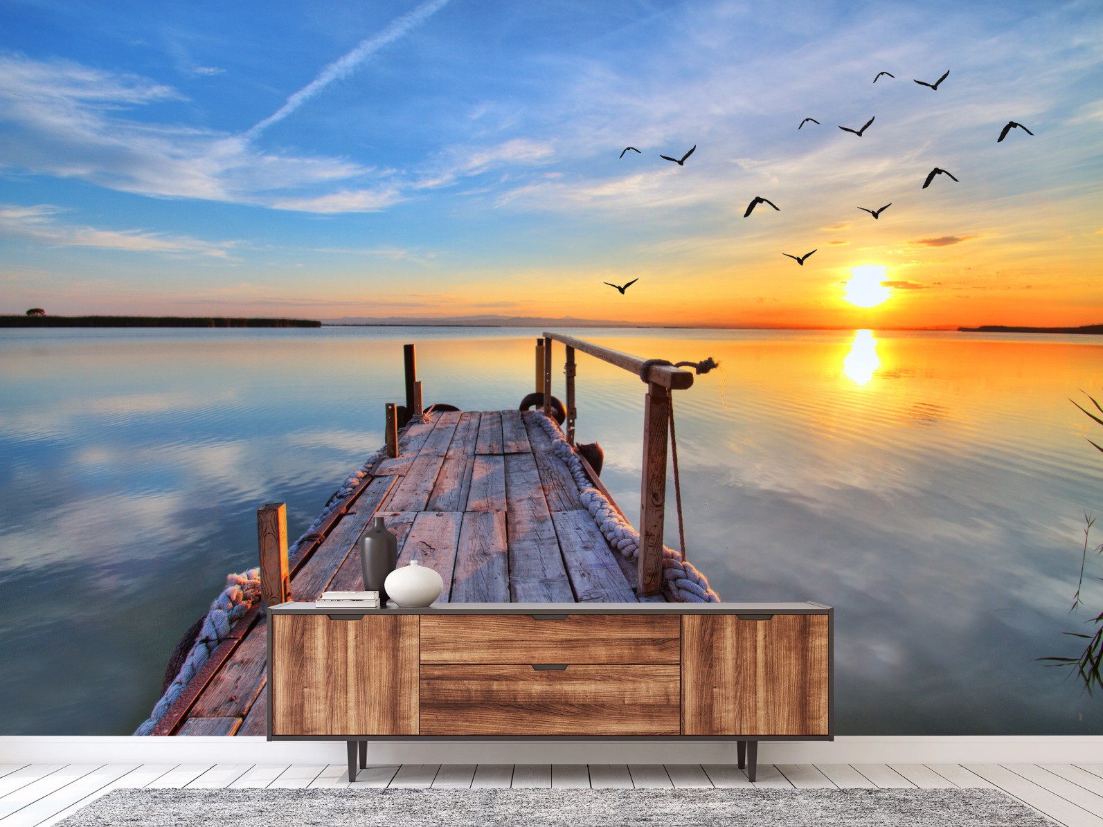 Fototapeta Zachód słońca przy drewnianym pomoście