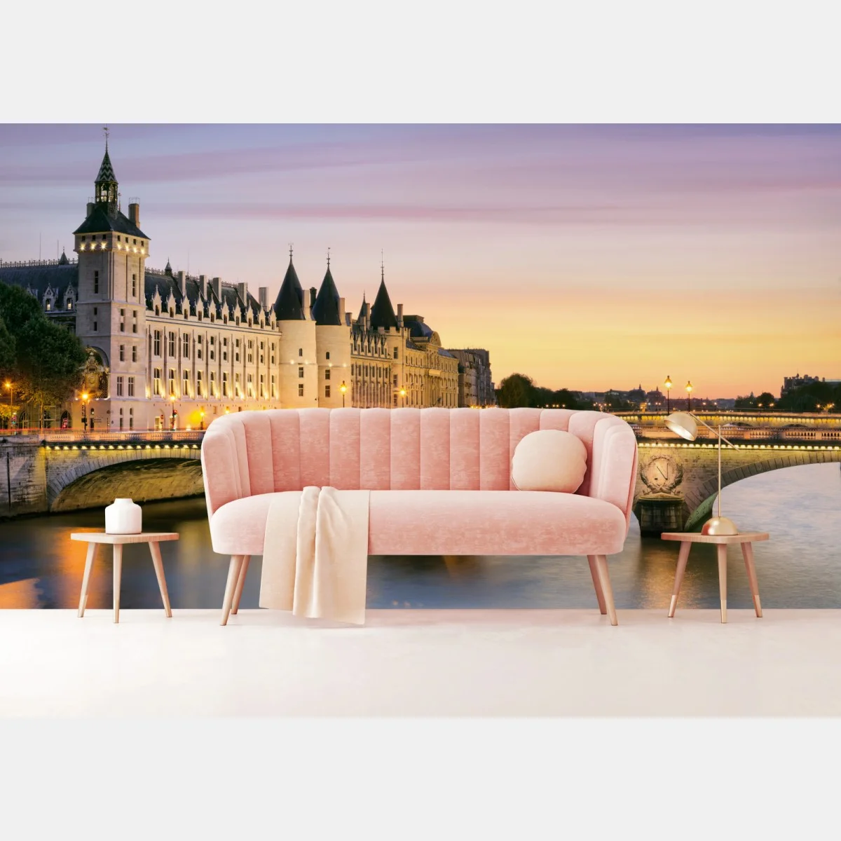 - panorama, architektura, zachód słońca, rzeka, wieczór, most, zabytek, paryż, sekwana, conciergerie