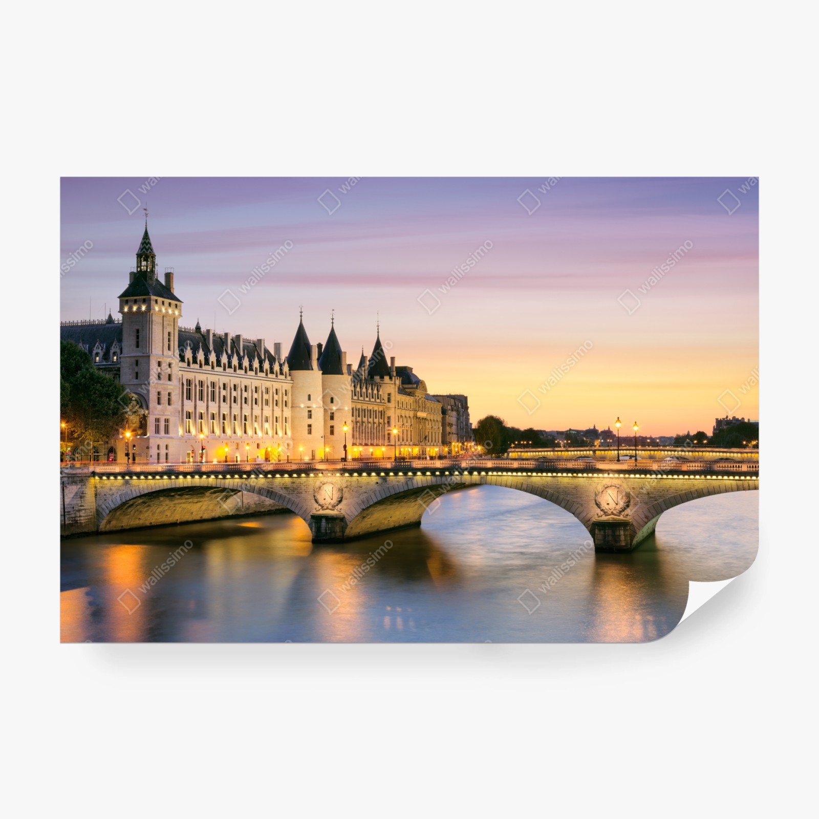 Fototapeta Paryż zachód słońca nad zabytkowym mostem