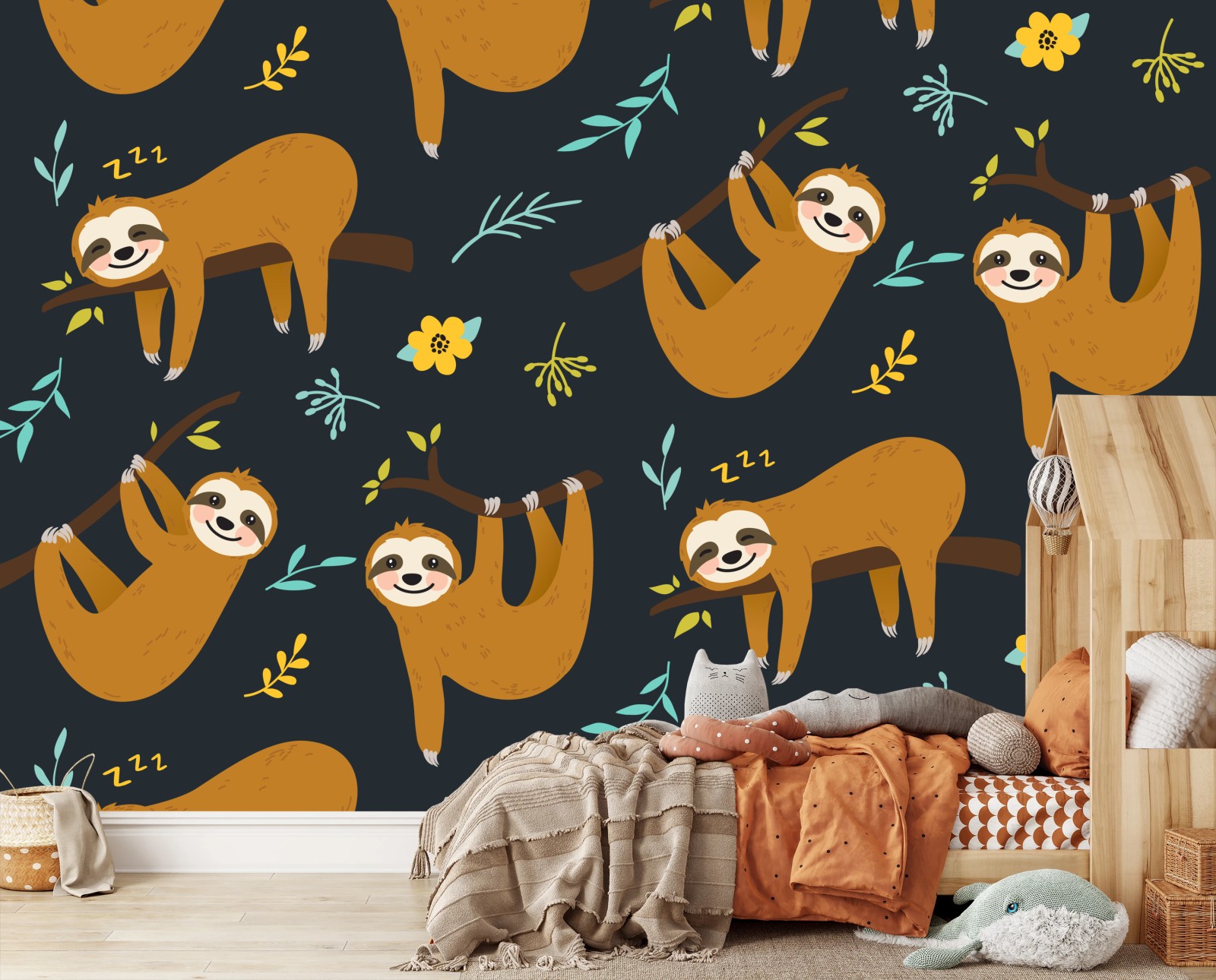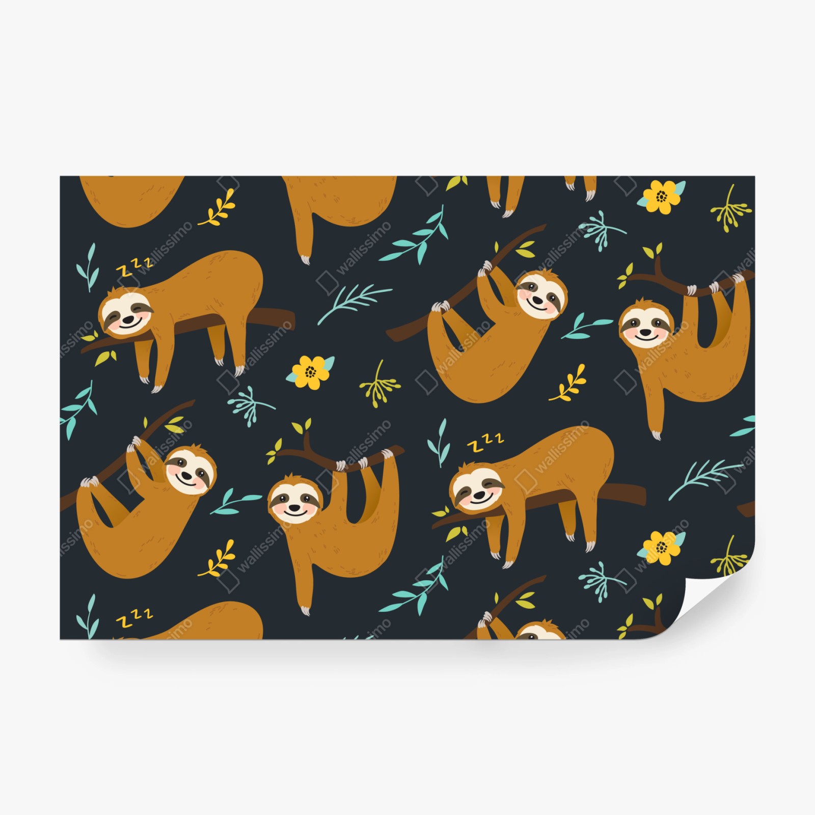 Fototapeta Słodki wzór z leniwcami do pokoju dziecka