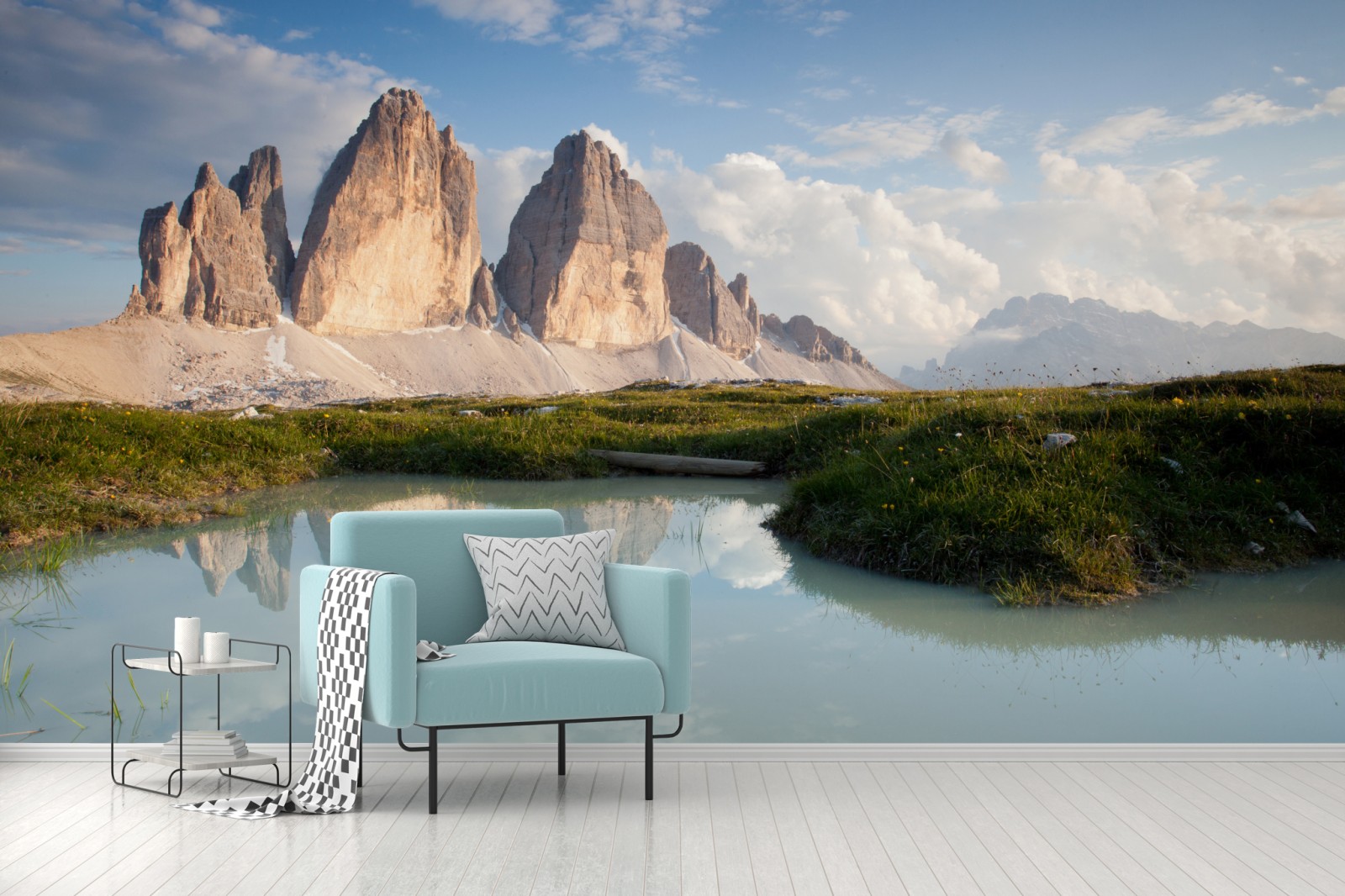 Poczuj spokój słonecznych alpejskich szczytów odbitych w lustrze jeziora — malowniczy krajobraz, który wprowadzi naturę do twojego wnętrza.