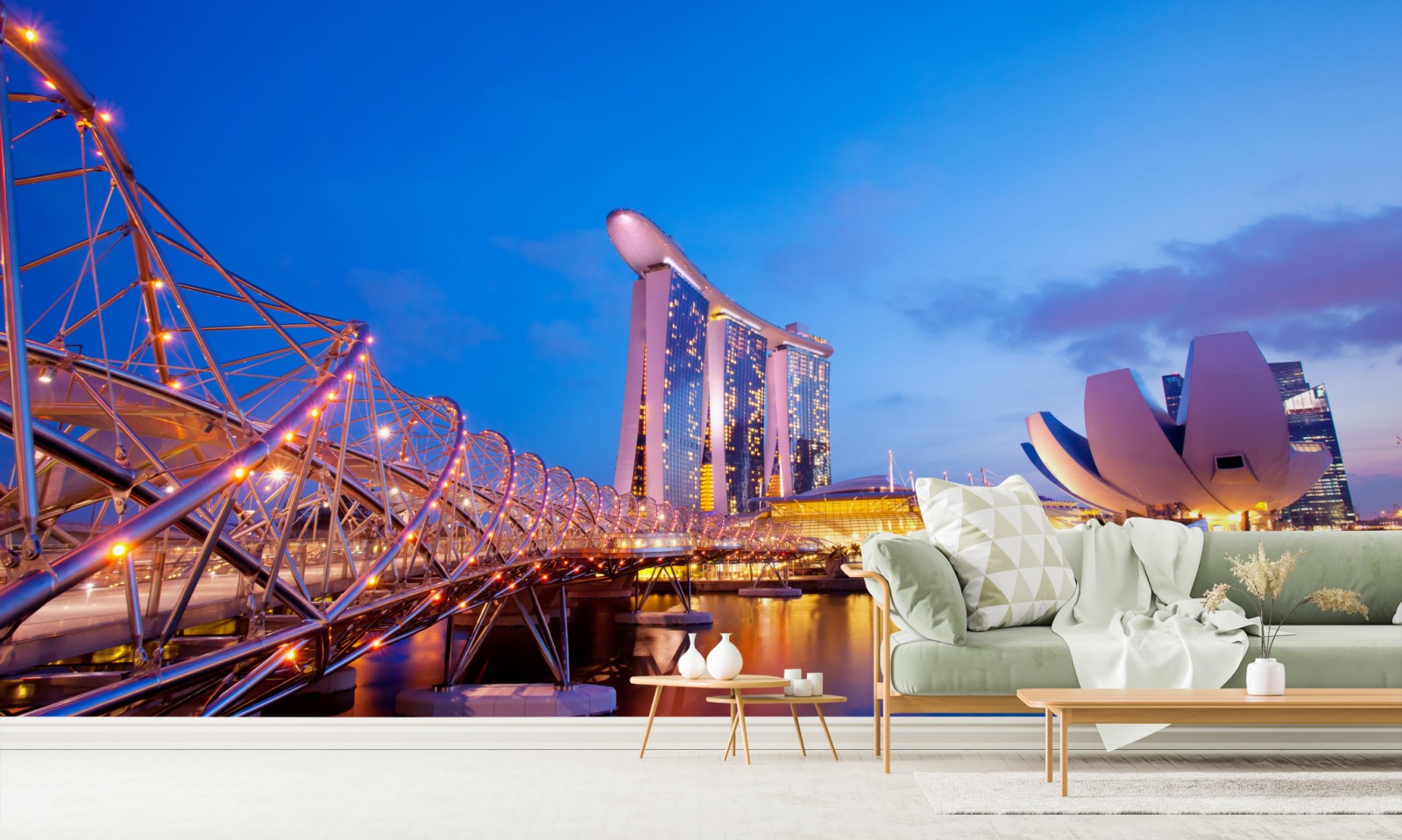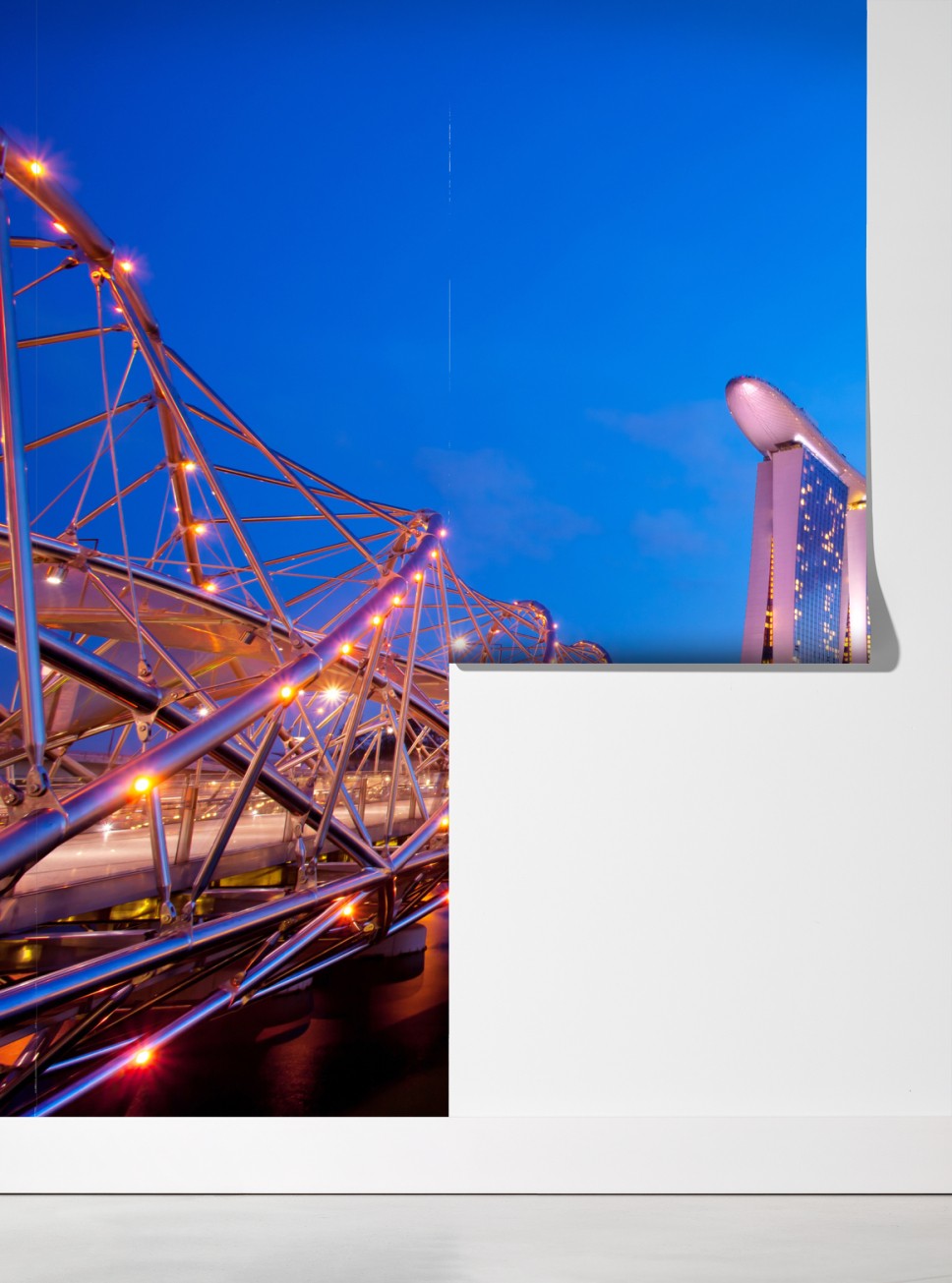 Dodaj swojemu wnętrzu dynamiczny nocny widok Marina Bay, idealny do nowoczesnych aranżacji i dla miłośników podróży.