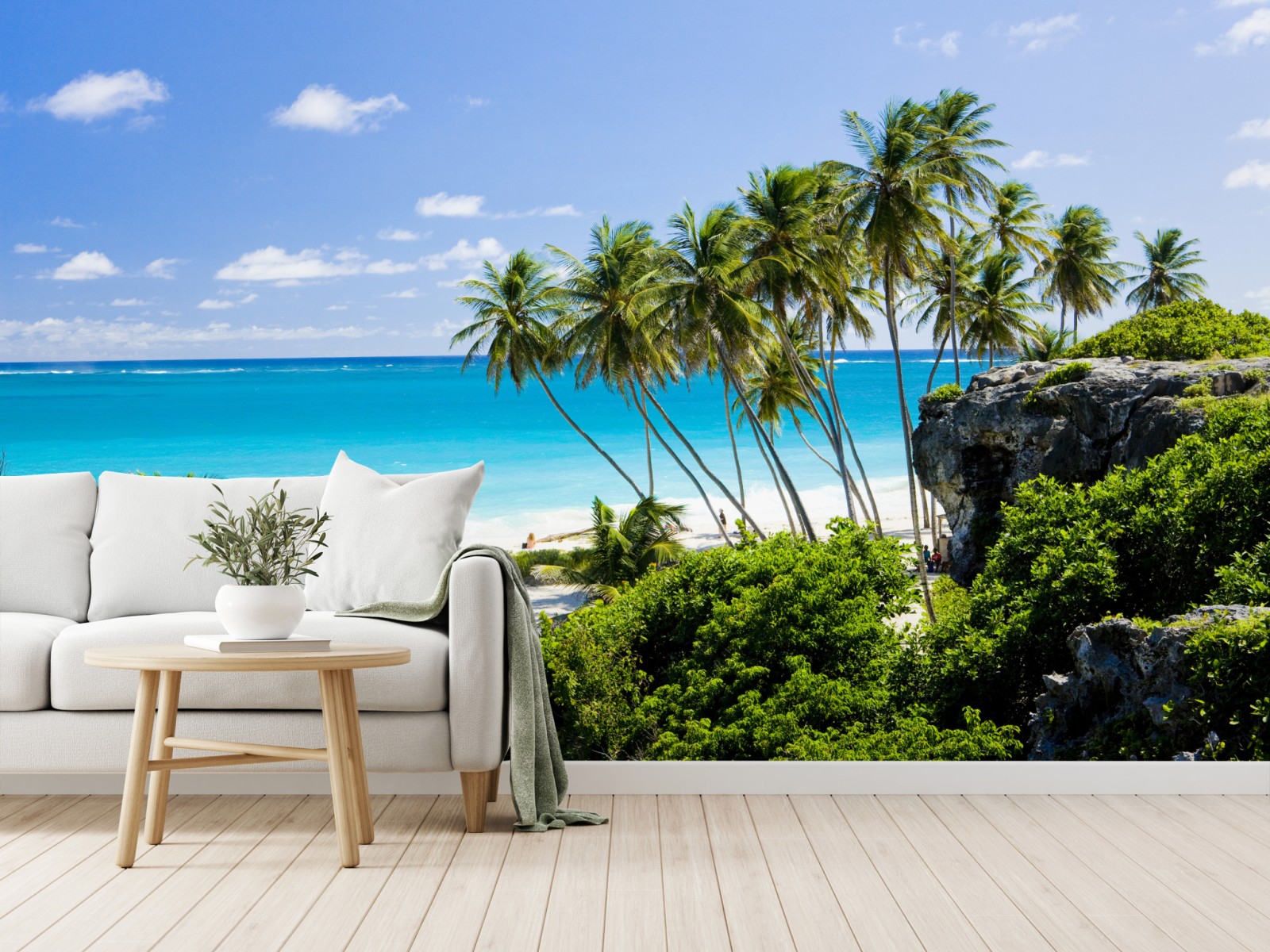 Wprowadź tropikalny spokój Bottom Bay na Barbadosie do swojego wnętrza dzięki żywym turkusowym wodom, białemu piaskowi i delikatnie kołyszącym się palmom.