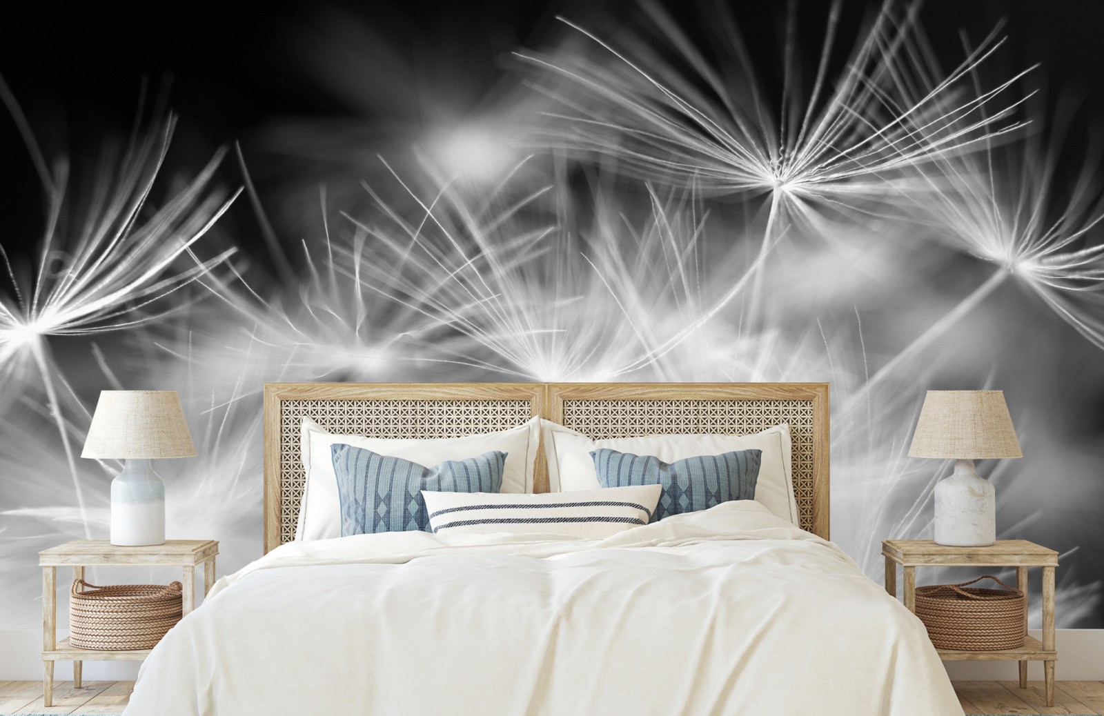 Dodaj subtelną naturalną elegancję do wnętrza dzięki temu monochromatycznemu makro dmuchawca. Miękka faktura i minimalistyczna kompozycja tworzą spokojny punkt centralny.