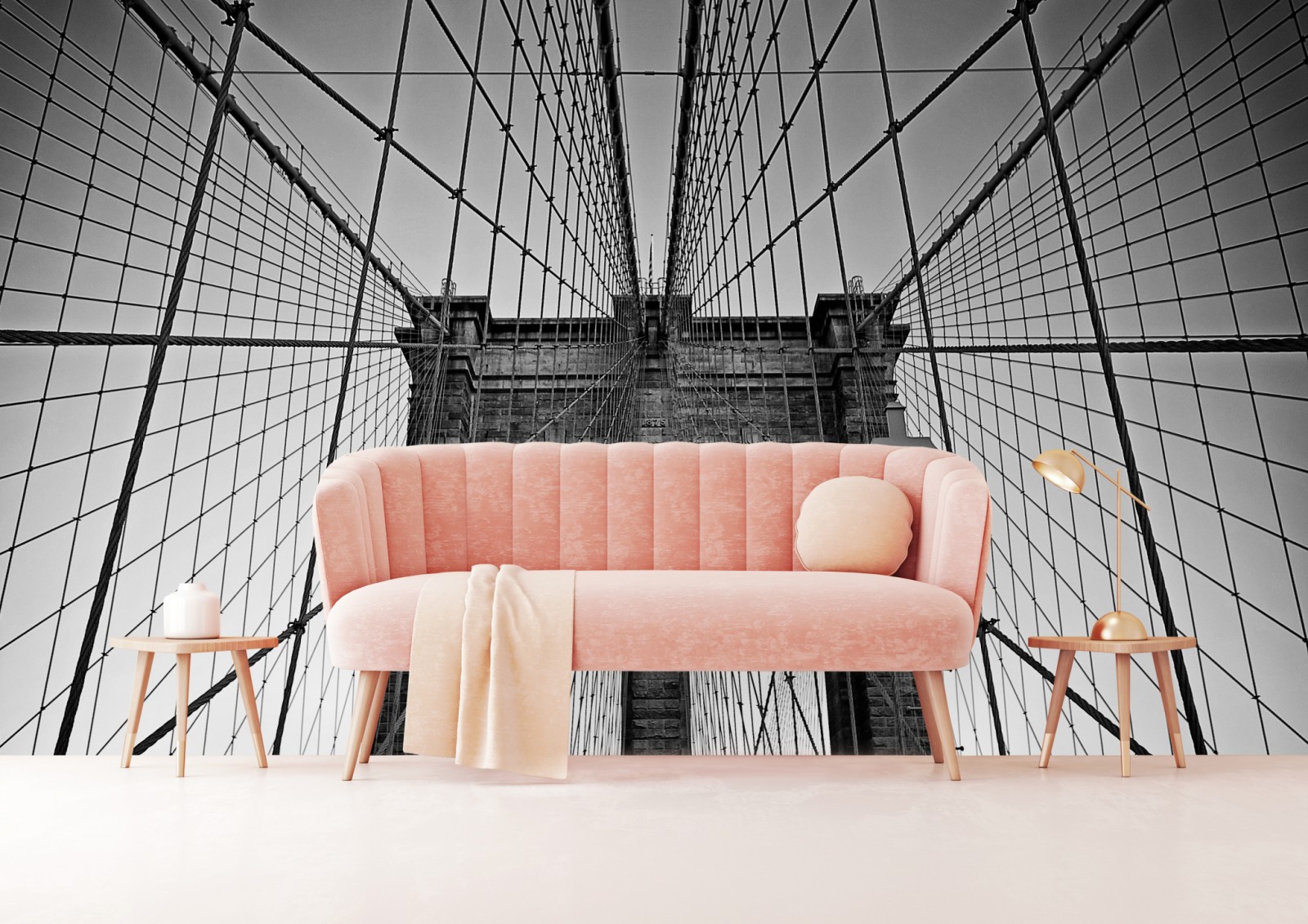 Fototapeta Symetryczny most wiszący w czerni i bieli