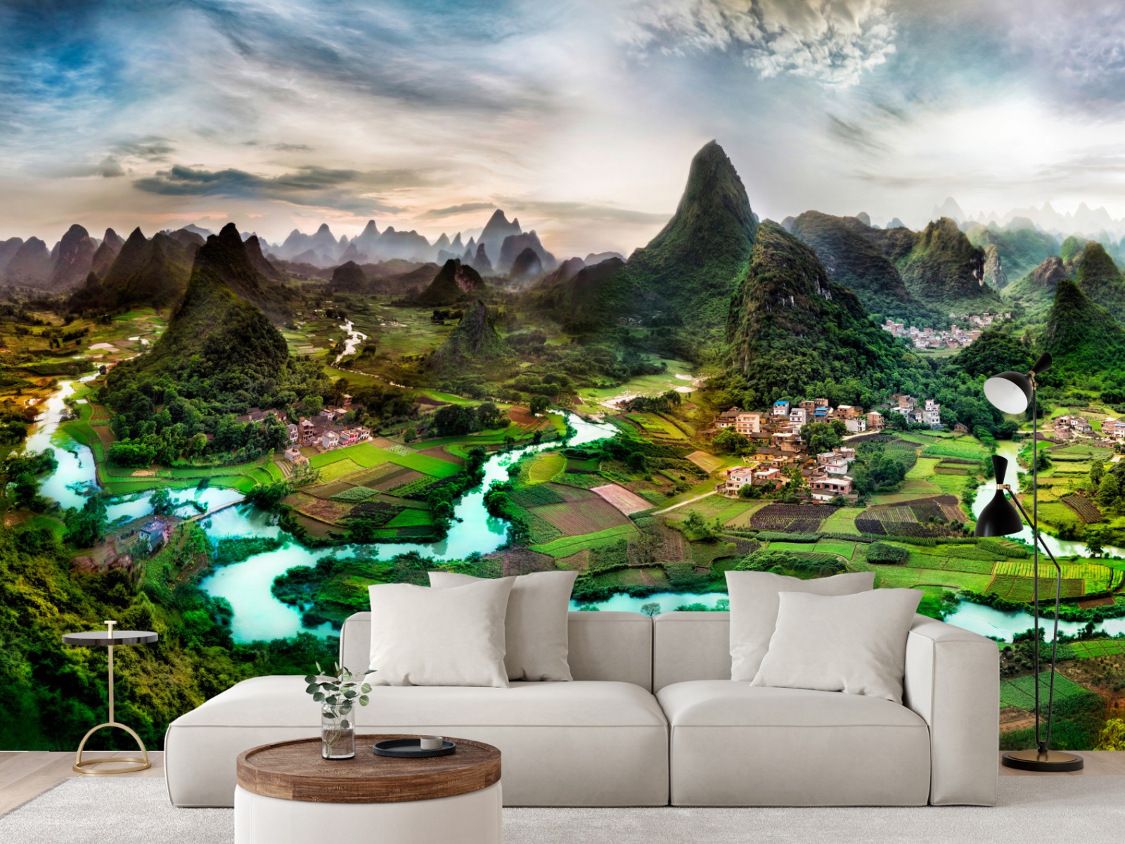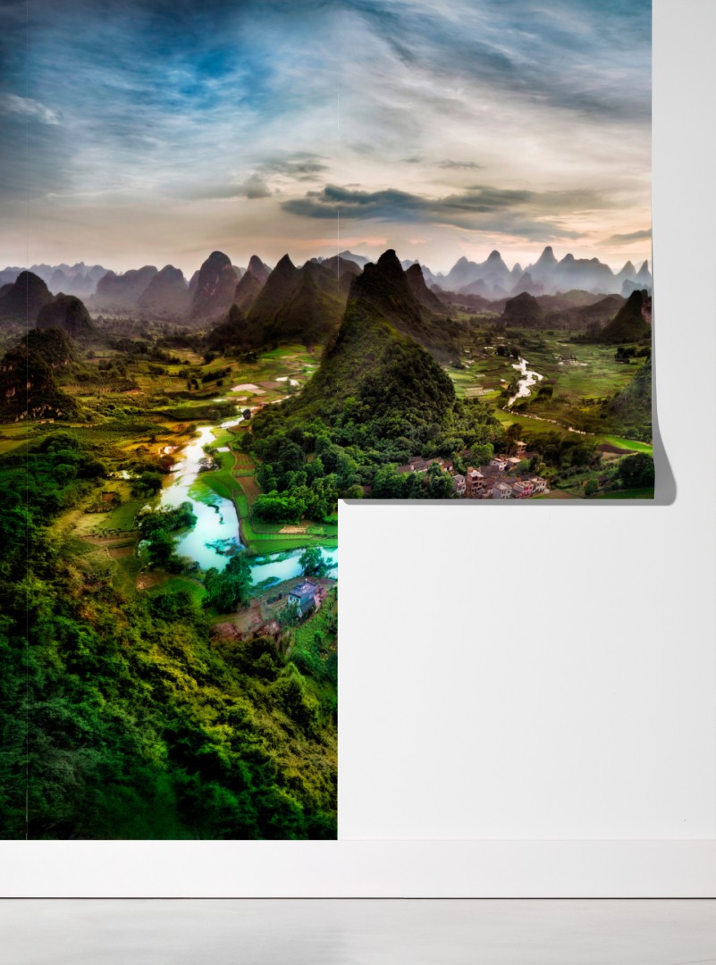 Wprowadź uspokajającą atmosferę krętej rzeki i bujnych krasowych wzgórz do swojego wnętrza dzięki temu żywemu panoramicznemu widokowi.