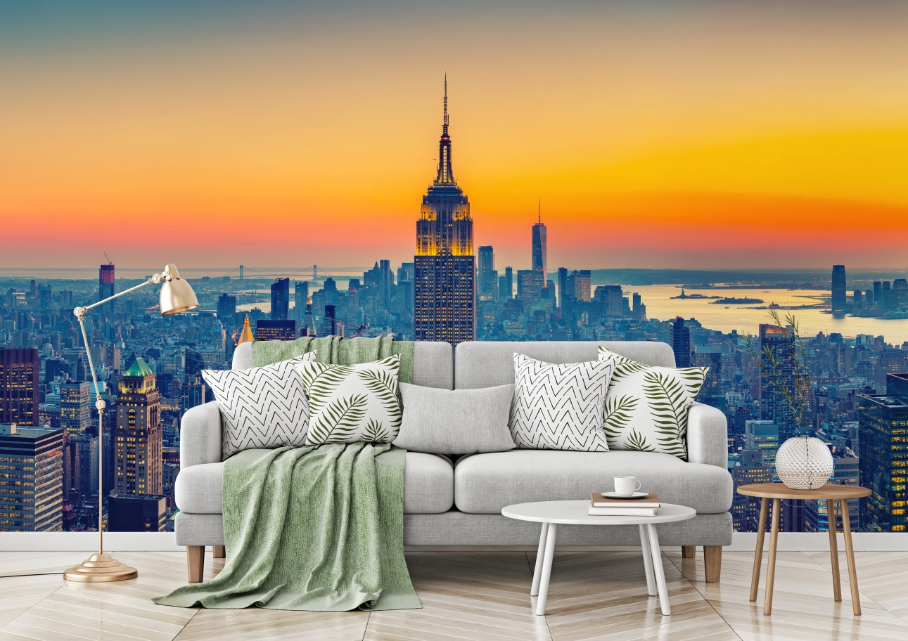 Poczuj energię Nowego Jorku dzięki panoramicznemu wydrukowi z zachodem słońca, który wprowadza miejski szyk do każdego wnętrza.