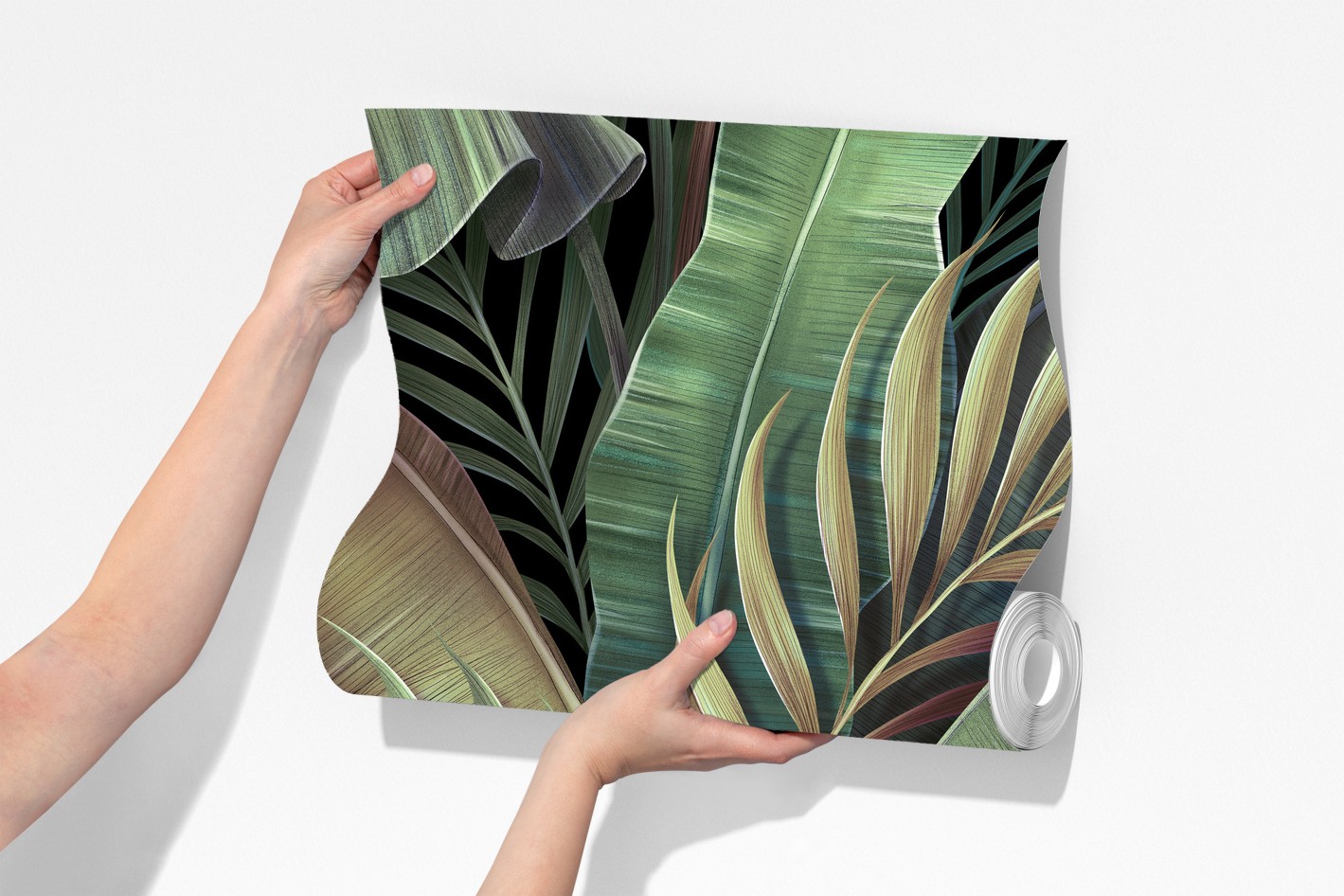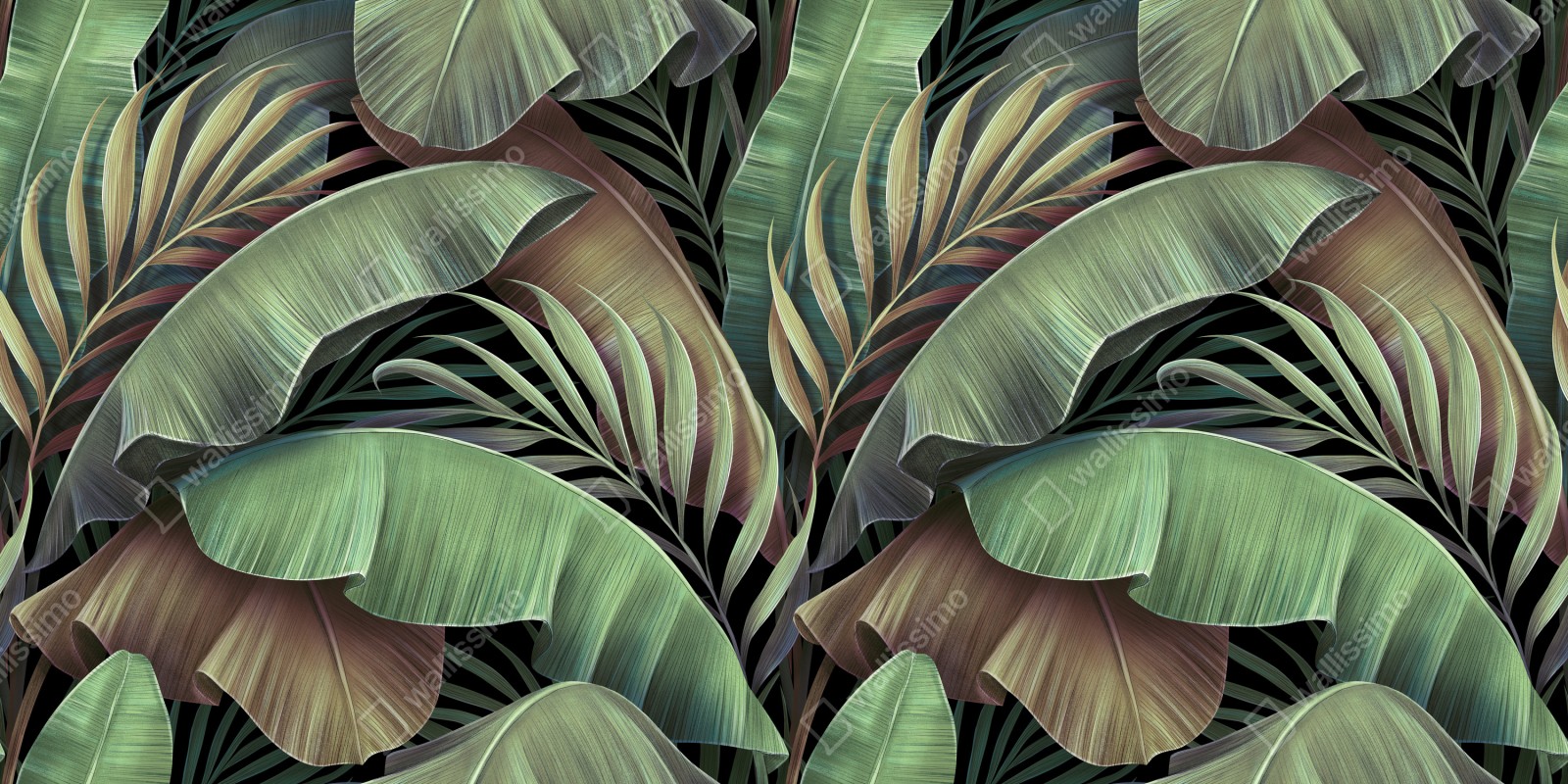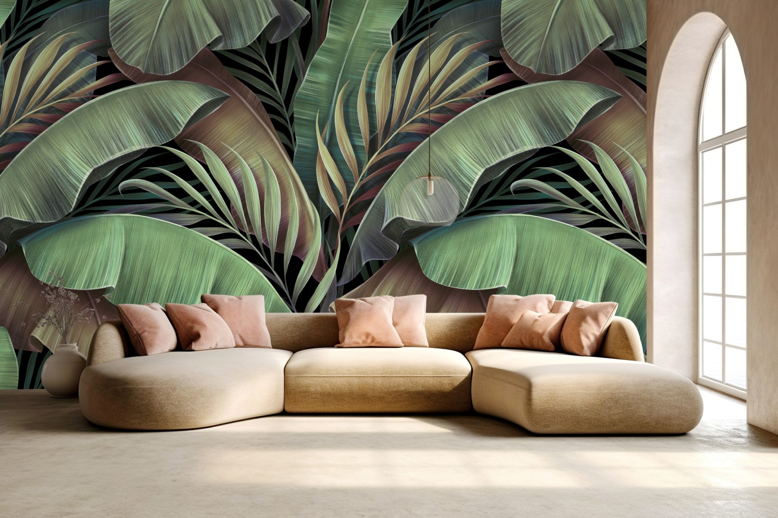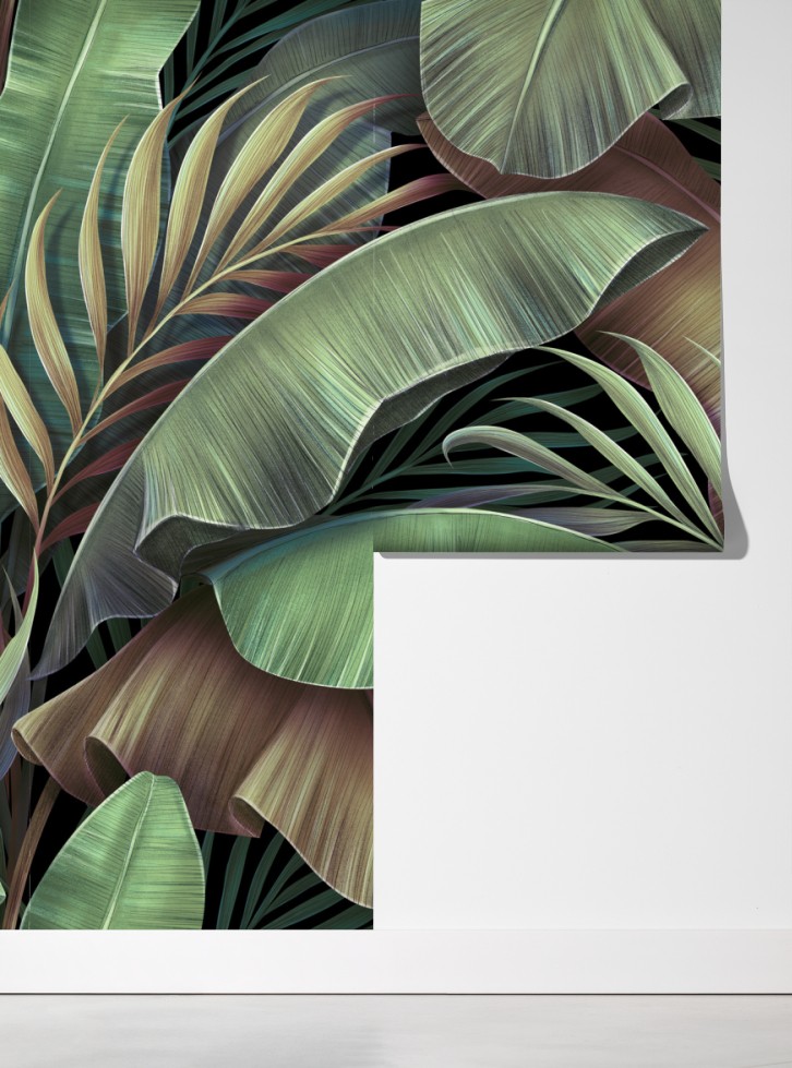 Wprowadź do wnętrza egzotyczny klimat dzięki eleganckiemu botanicznemu wzorowi liści, idealnemu do stworzenia relaksującej, naturalnej atmosfery.